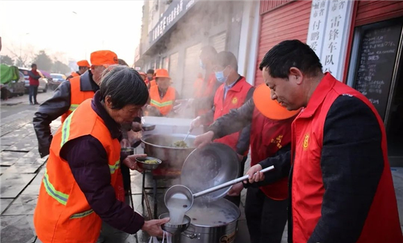 “謝謝黨和政府、工會組織對我們的關(guān)懷?!表?xiàng)城市文明路愛心粥屋前,環(huán)衛(wèi)工閆愛云端著剛剛盛好的暖心粥開心地說。