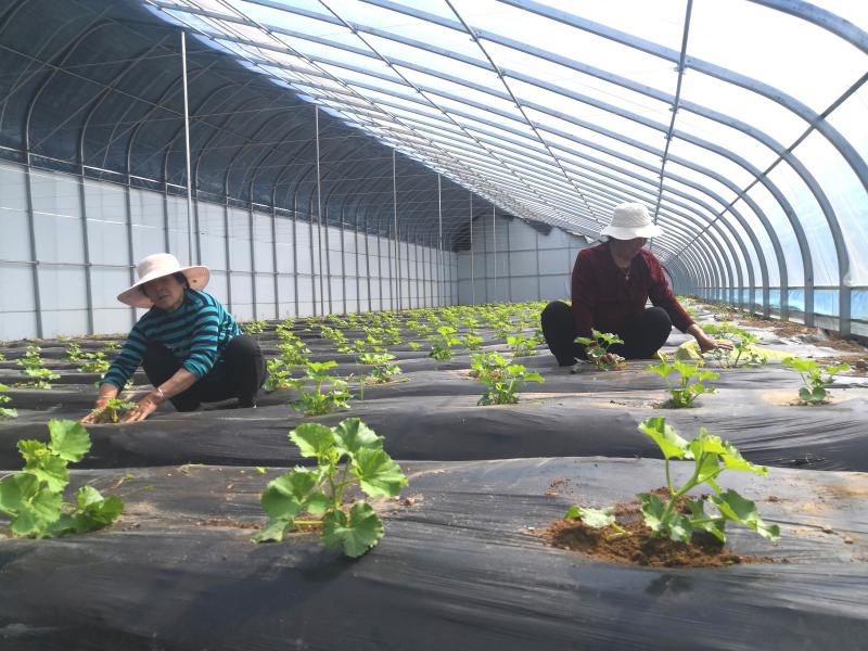 “當(dāng)下,正逢‘吊秧’香瓜生長旺盛的時(shí)候,這幾天,我和馮大姐一直在大棚里忙活,每天有事兒干、有人陪說話,還可以掙到60元的工錢,就在家門口,多好??!”4月8日,在半截樓村新建的溫室大棚內(nèi),65歲的李愛蓮一邊忙著為瓜秧打岔,一邊對記者說。