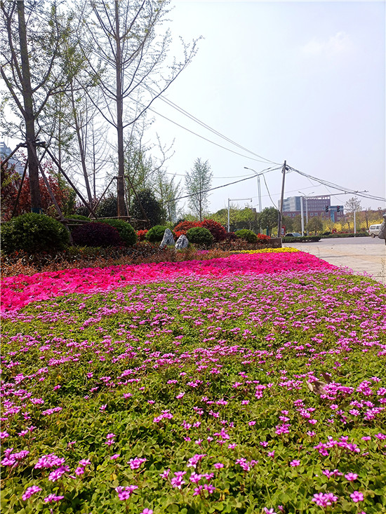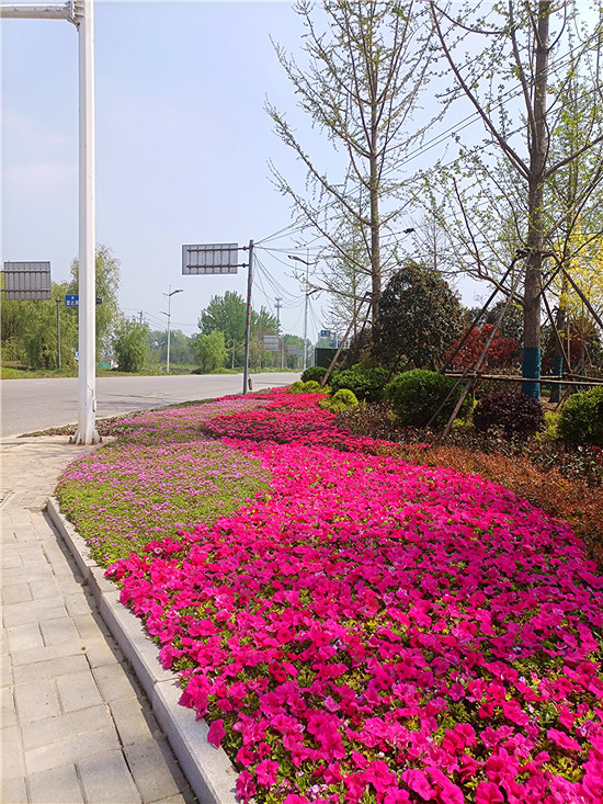 春時(shí)花事道不盡,千姿百態(tài)競(jìng)嬌妍。近日,隨著天氣漸暖,我市各色花卉相繼綻放,在周口大道與建設(shè)大道交叉口一處綠化帶內(nèi),色彩繽紛的花卉編織成一條花的長廊,令人眼前一亮。