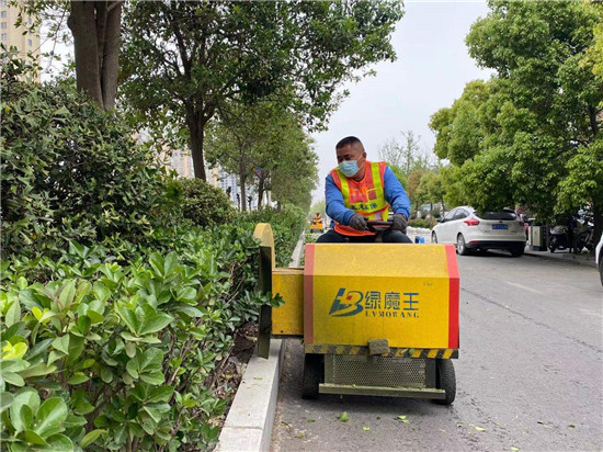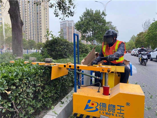 4月13日,周口大道上園林工人操作著特殊的園林作業(yè)車,修剪路邊的綠化樹,使用“電推子”,不僅提高了效率、節(jié)省了人力,就連“剃”出來的“平頭”也更平了。“電推子”所到之處,綠化樹被修剪得很齊整。②9