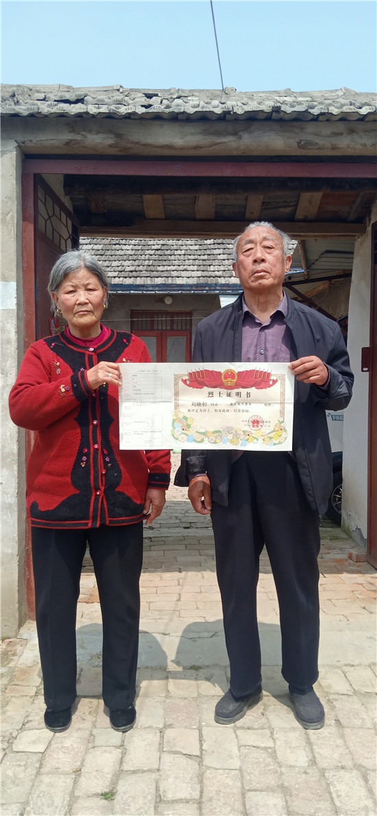 圖片說(shuō)明:劉仰生夫婦展示父親劉曉初的烈士證明書(shū)