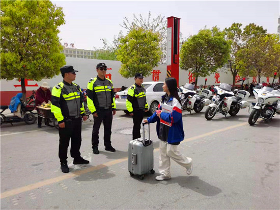 在七八年級到九年級段集中離校的兩天時間內,縣交警大隊鐵騎中隊負責人何濤帶領執(zhí)勤民警一直堅守在學校周邊執(zhí)勤崗位,全身心的投入工作,加強交通疏導,分流過往車輛,并向學生和家長宣傳交通安全常識,確保學生和家長平安回家。他們站在路口和車流中認真執(zhí)勤,指揮車輛有序通行,耐心勸導車輛繞道,接受過往司機咨詢,及時疏導易堵路段,一直堅持到全部學生、家長離校才收隊撤離,以實際行動保障了數(shù)千名學生的平穩(wěn)、安全、有序離校,在學生家長中間產生了積極的影響,贏得了家長學生的一致贊賞,以安全護航保師生平安,切實實現(xiàn)了讓家長放心,學生舒心的良好社會效應。②2