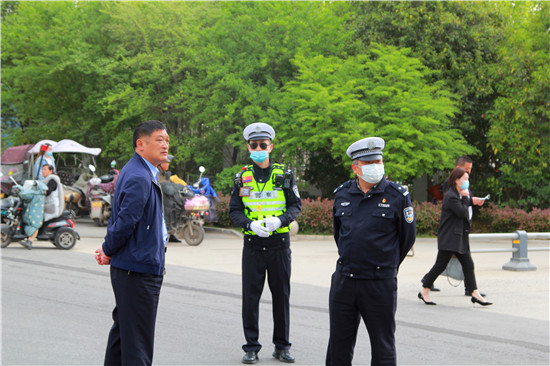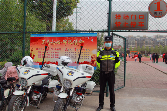 4月16日,鄲城一高舉行第12屆18歲成人儀式暨奠基高考決勝2022誓師大會。鄲城縣公安局副局長朱衛(wèi)兵率領(lǐng)交警鐵騎隊兵分4路,從早上7時至上午11時在學(xué)校周圍維護(hù)交通秩序,確保數(shù)千名家長的車輛有序停放,疏堵保暢。