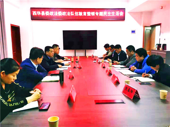 4月22日下午,西華縣委政法委在商務(wù)中心七樓會議室召開政法隊伍教育整頓專題民主生活會。省駐點指導(dǎo)組高曉華、市委政法委四級調(diào)研員黃銅墻應(yīng)邀到會指導(dǎo)。縣委常委、政法委書記陳秉生代表縣委政法委班子及本人作對照檢查。
