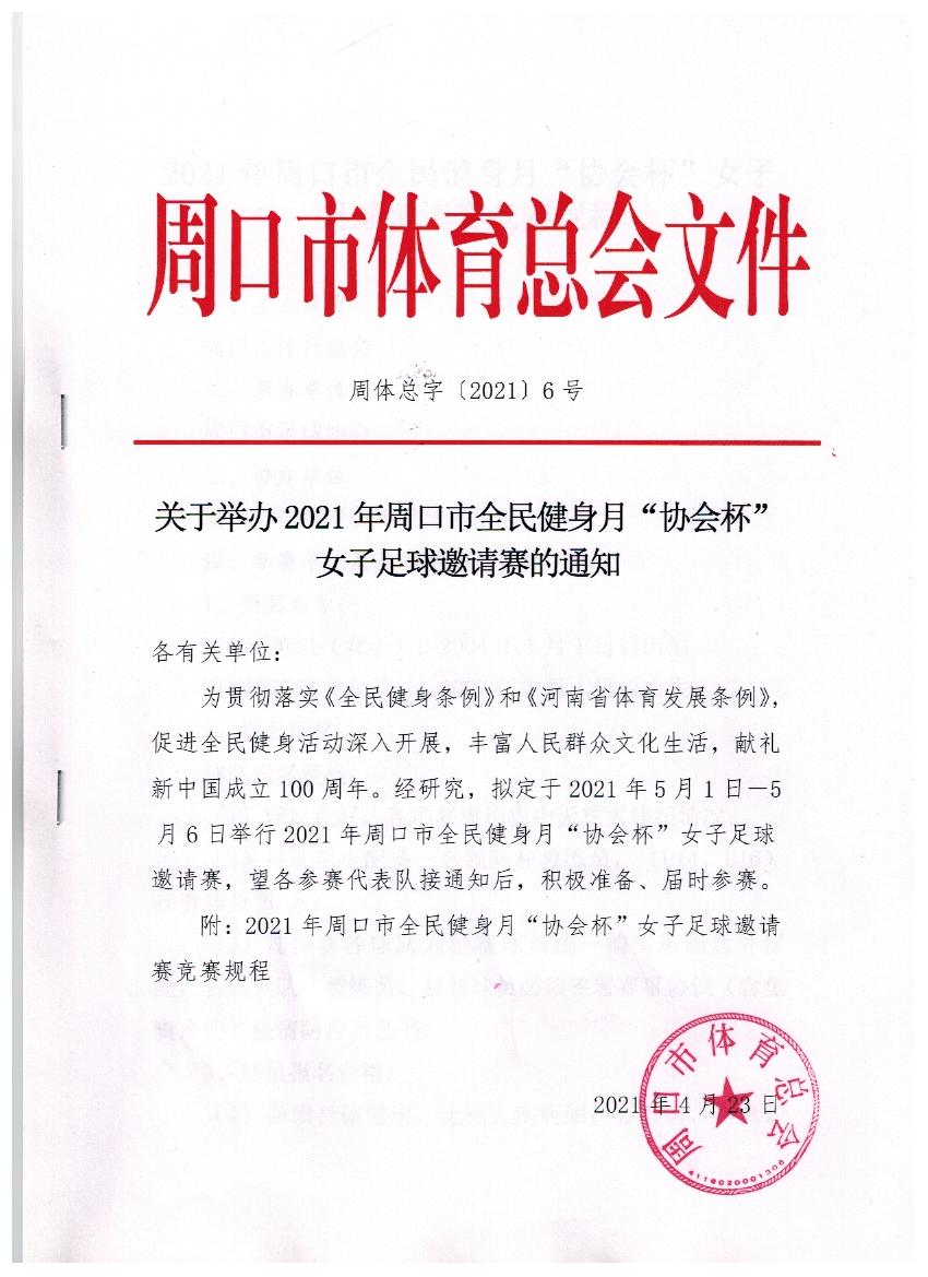 近日,記者從市足協(xié)獲悉,五一期間,我市將迎來2021年周口全民健身月“協(xié)會杯”女子11人制足球邀請賽,屆時,將有來自省內(nèi)外的10多支女子足球隊蒞臨周口,展開角逐。