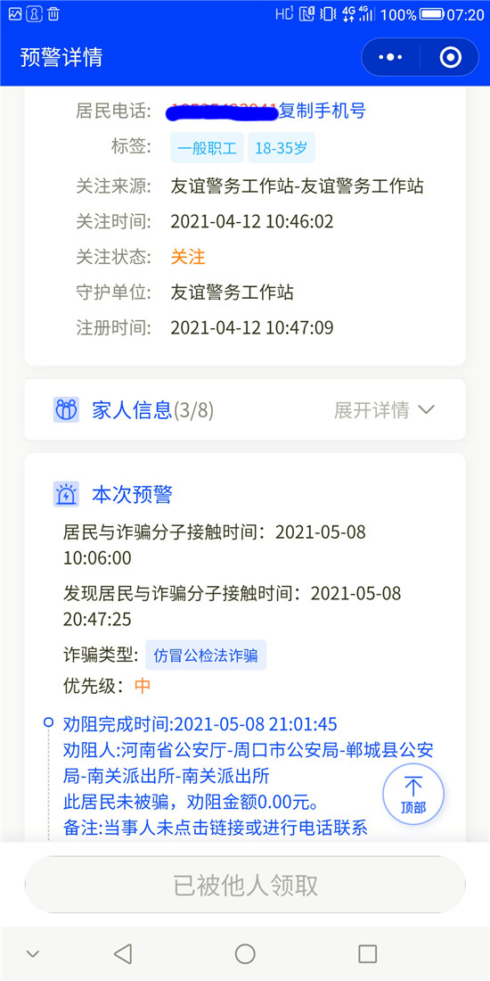 5月8日,鄲城縣公安局南關(guān)派出所社區(qū)民警收到“金鐘罩”推送的反詐預(yù)警信息,轄區(qū)居民郭某有受騙風(fēng)險,社區(qū)民警第一時間聯(lián)系郭某核實了解相關(guān)情況并及時予以制止。