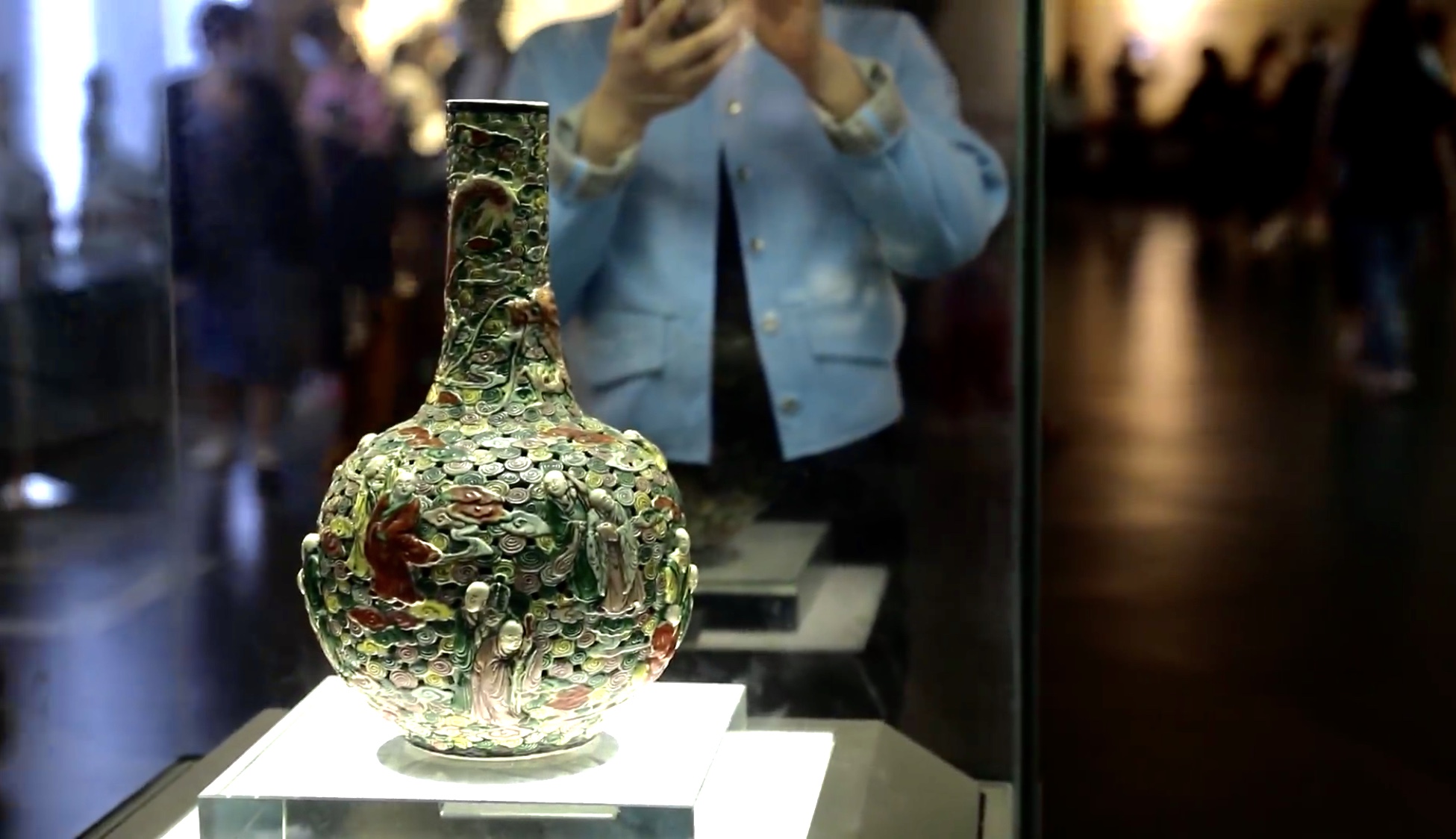 我的燒制工藝也是十分考究的,需要二次燒制才能形成完整瑰麗的玲瓏瓶。景德鎮(zhèn)的陶瓷專(zhuān)家先要使用圓雕的技法,用高能有機(jī)土勾勒出我圓鼓鼓的肚子,修長(zhǎng)的脖頸,但此時(shí)我只是一個(gè)灰突突的瓶子站在火堆旁,等待定型。第一次燒制確定我形狀,我便開(kāi)始“化妝”了,這是一個(gè)漫長(zhǎng)的過(guò)程。十八羅漢那慈眉笑眼的神態(tài),蒼龍那曲折盤(pán)旋的角度,都是景德鎮(zhèn)專(zhuān)家們仔細(xì)打磨,一次次嘗試才能確定完成的。接著是上色,穿上“五彩衣服”后再次燒制,我才實(shí)現(xiàn)華麗變身,大家才能夠看到如此美麗有著異域風(fēng)格的五彩透雕十八羅漢云龍瓶,然后我被“護(hù)送”到清朝皇家大院,與琳瑯滿(mǎn)目的珍寶為伍。
