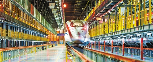 鄭州南動(dòng)車所對(duì)標(biāo)準(zhǔn)組動(dòng)車進(jìn)行檢修。近年來,高鐵新線的陸續(xù)開通,為鄭州逐步建設(shè)成國(guó)際性綜合交通樞紐提供了強(qiáng)勁動(dòng)力。 王 錚攝(中經(jīng)視覺)