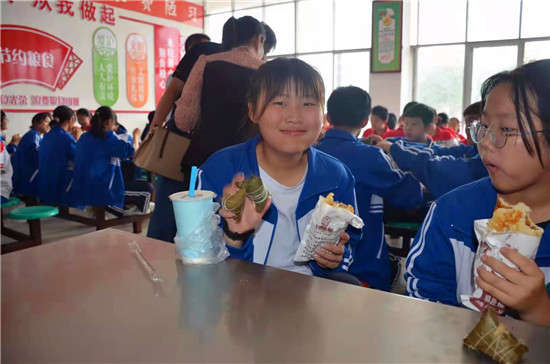 “我覺得今年的端午節(jié)意義特別特殊,再過幾天就要中考了,為了讓大家安心學(xué)習(xí),我們沒有放假回家過端午,學(xué)校還特地為我們分發(fā)了粽子,從校長手中接過粽子的那一刻讓我深深感受到了被關(guān)愛的幸福!”九年級學(xué)生劉奇盛說。