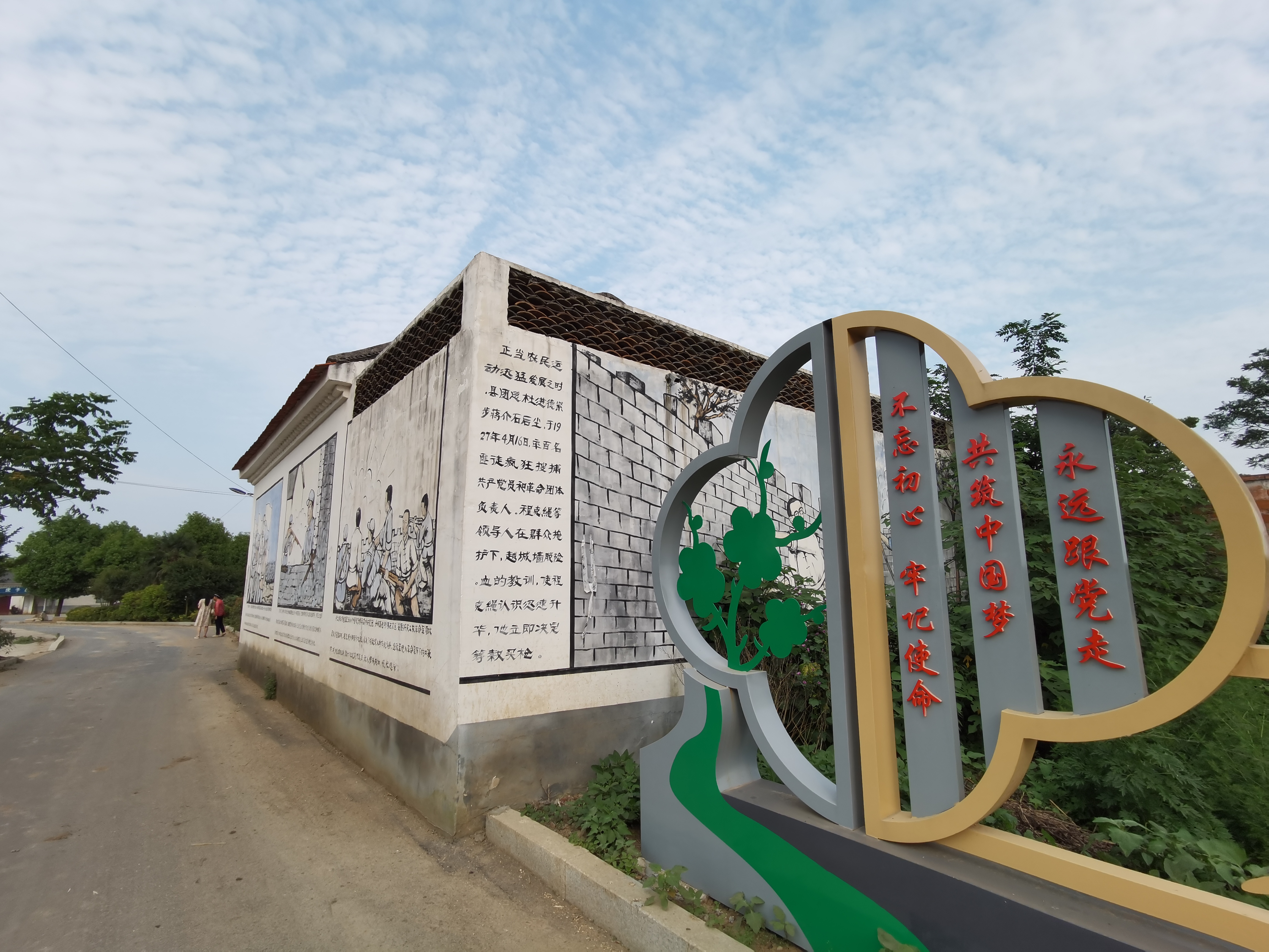時(shí)空轉(zhuǎn)換。程克繩等革命先烈戰(zhàn)斗過的紅色熱土,已經(jīng)發(fā)生了翻天覆地的變化。行走在程坡村,只見硬化過的村道平坦、干凈,道路兩邊綠樹成蔭、鮮花綻放,農(nóng)房整修一新,墻上彩繪再現(xiàn)了程克繩光輝事跡的故事場(chǎng)景,村里三三兩兩的老人,聚在樹蔭下拉家?!?/p>