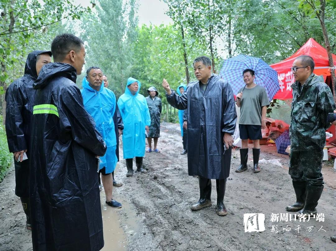 7月28日上午,扶溝縣委書記孫紅偉冒雨到賈魯河大堤險工險段實地督導(dǎo)保堤護堤工作。
