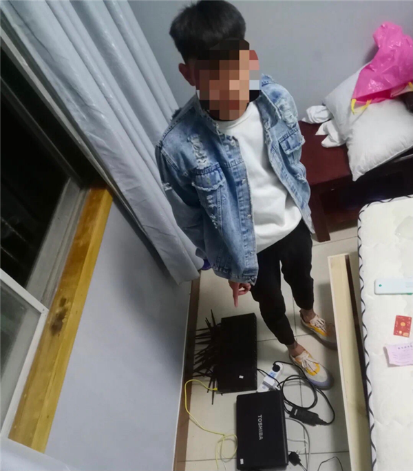 經(jīng)過3天3夜的蹲守,辦案民警摸清了犯罪嫌疑人的活動軌跡,10月13日晚上,吳臺派出所所長朱浩宇帶領民警賈坤陽等人果斷出擊,成功搗毀該涉詐窩點,將嫌疑人覃某宗和陳某欽抓獲,查獲“GOIP”設備1臺、電腦2臺、手機2部、路由器1臺、攝像頭1個。