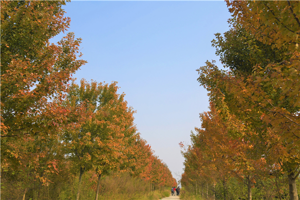 霜降過(guò)后,層林盡染。商水縣張明鄉(xiāng)炎坤種植合作社千畝苗圃里的紅葉石楠、五角楓、紅冠紅楓、法桐等數(shù)十種苗木葉子開始變得斑斕多彩,和路邊野蒿、地上的草坪、天上潔白的云朵形成豐富的景觀層次,吸引了周邊大批游客前來(lái)游玩賞秋。