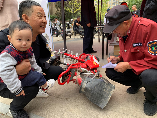 社區(qū)工作人員深入小區(qū)為居民電動車上牌