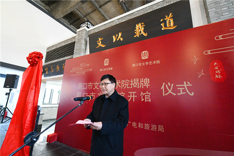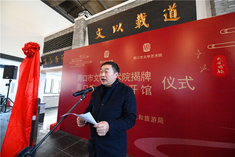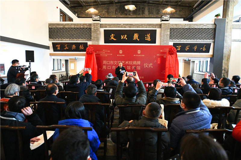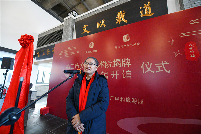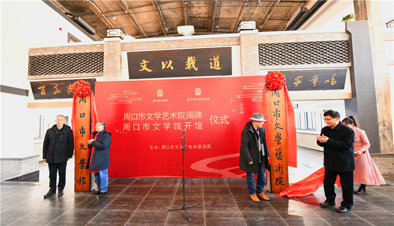 市領導王少青、梁建松和周口籍著名作家劉慶邦、墨白為市文學館、市文學藝術院揭牌