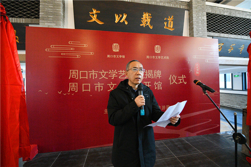 市文聯(lián)主席吳青峰在開館儀式上宣讀賀信