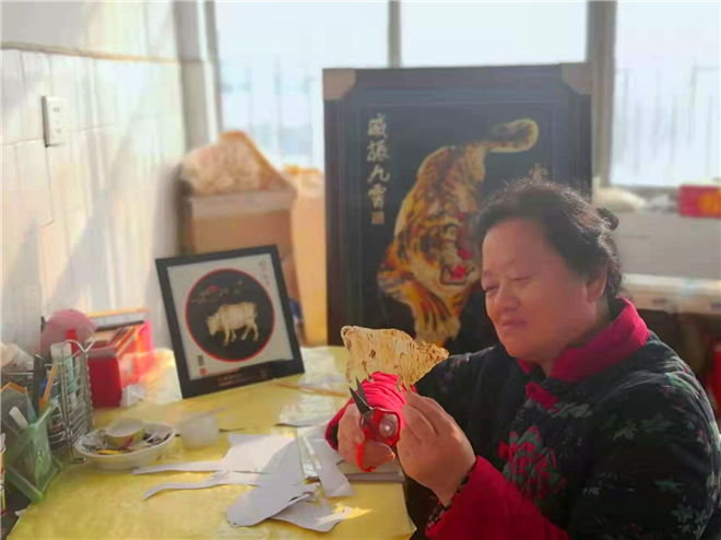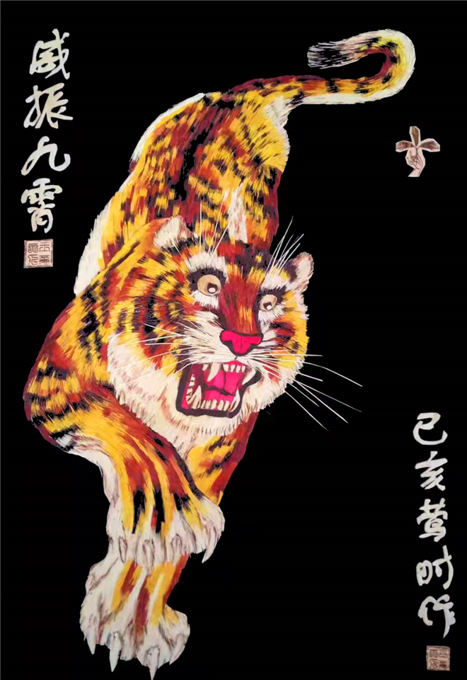 “虎在中國是極其有力量的動物。”1月25日,秸稈畫技藝代表性傳承人、中國民間文藝家協(xié)會國家級會員王春梅告訴記者,她耗時近半年創(chuàng)作的秸稈畫《威震九霄》已完成。記者看到,作品中的老虎長半米有余,威風(fēng)凜凜、活靈活現(xiàn),用平面的方式展現(xiàn)了立體的效果?!?022年是虎年。在古代,老虎就以威風(fēng)凜凜的形象被視為勇氣的象征,來表現(xiàn)軍人的勇敢和堅強(qiáng)。古時候關(guān)于將士大臣的美譽(yù)就有虎將、虎臣、虎士等?!蓖醮好氛f。