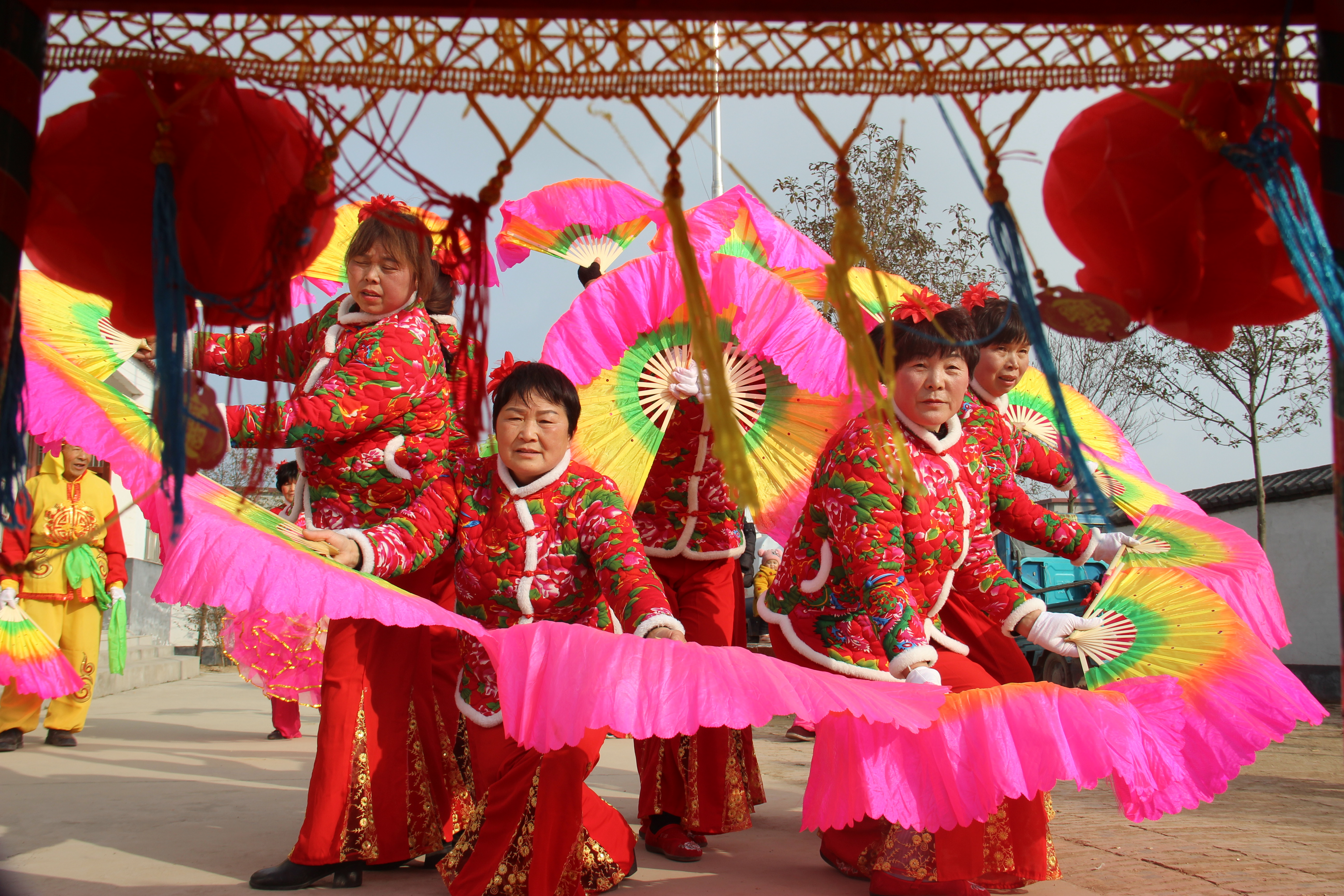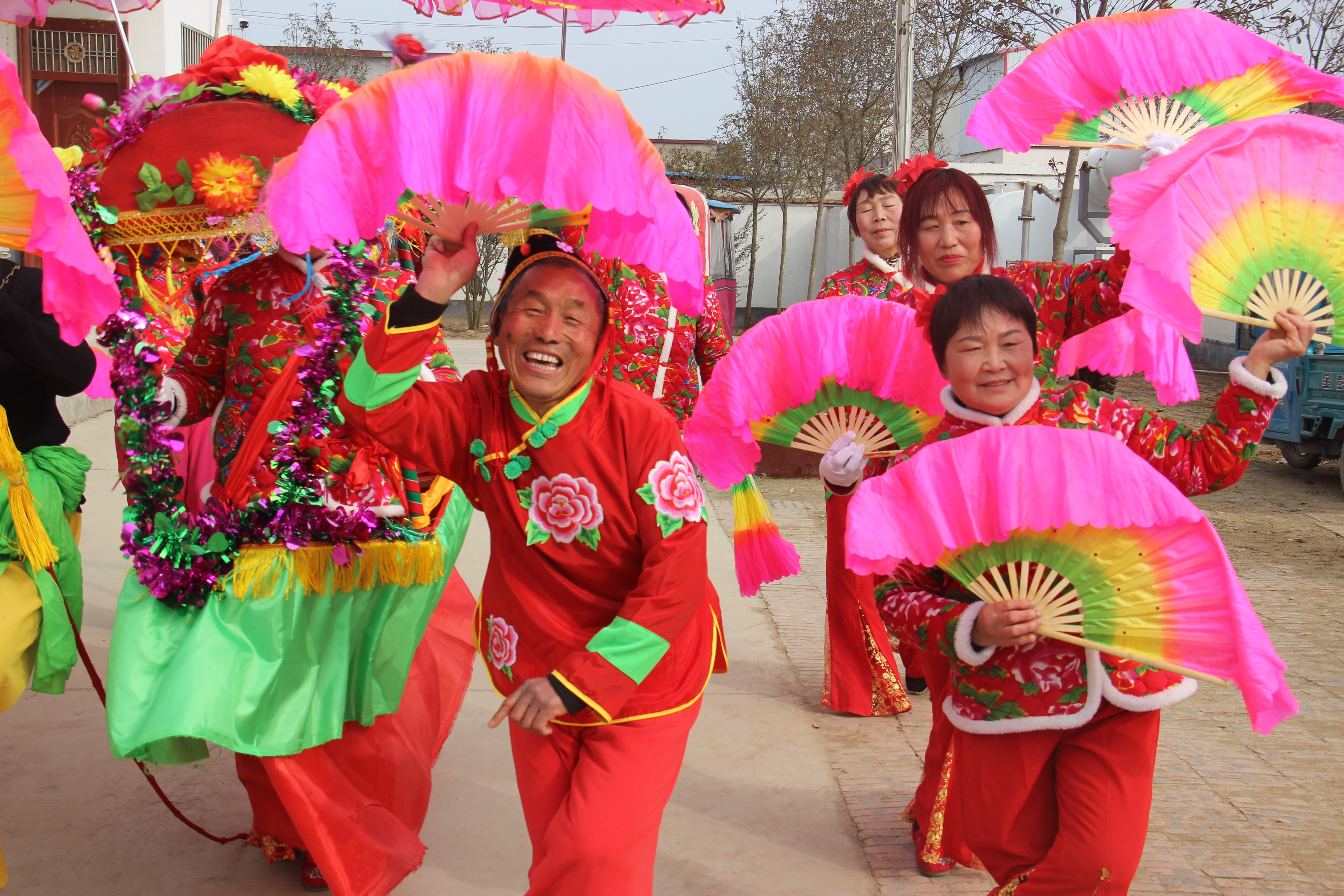 2月13日,商水縣郝崗鎮(zhèn)呂場(chǎng)村文藝愛(ài)好者表演了旱船、扇子舞等傳統(tǒng)節(jié)目?;⒛暝?jié)將至,郝崗鎮(zhèn)的民間文藝團(tuán)體在集鎮(zhèn)、鄉(xiāng)村演出,歡歡喜喜迎佳節(jié)。③7