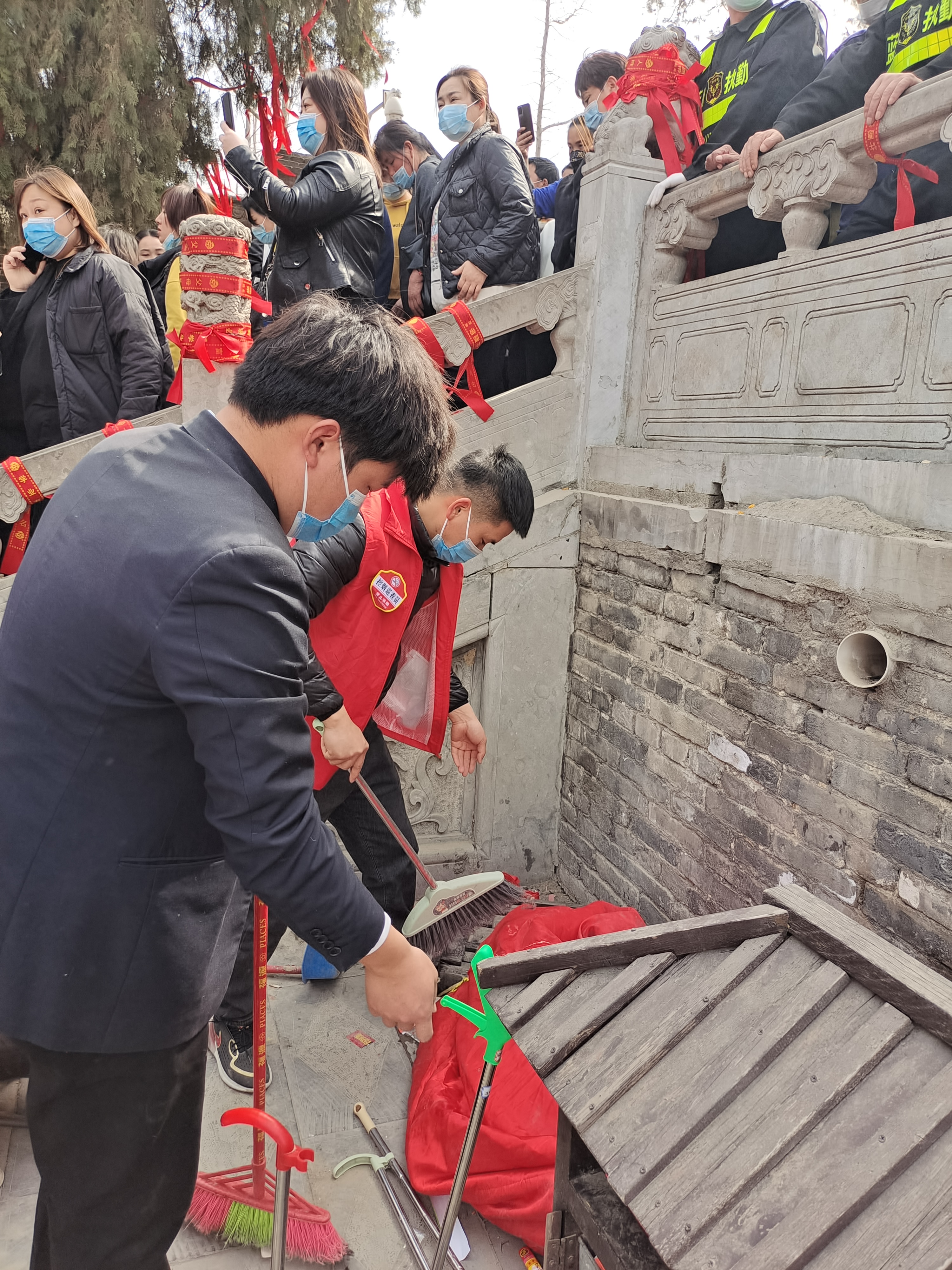在伏羲陵墓后的蓍草園周圍,有人買紅布條系在欄桿上祈福,有人虔心祝禱。當(dāng)蓍草成為聚焦點(diǎn)時(shí),有人卻拿著打掃工具默默清理垃圾,讓蓍草園成為一方“凈土”。見他們身穿紅馬甲,記者上前詢問(wèn),原來(lái)是來(lái)自建業(yè)物業(yè)的志愿者,其中一名叫李小宇,他說(shuō)太昊陵已經(jīng)成為淮陽(yáng)門面,要做好衛(wèi)生,把太昊陵的良好形象維持住。“我們都是自愿前來(lái),讓家鄉(xiāng)父老不論啥時(shí)候都看到一個(gè)干干凈凈的太昊陵!”李小宇說(shuō)。