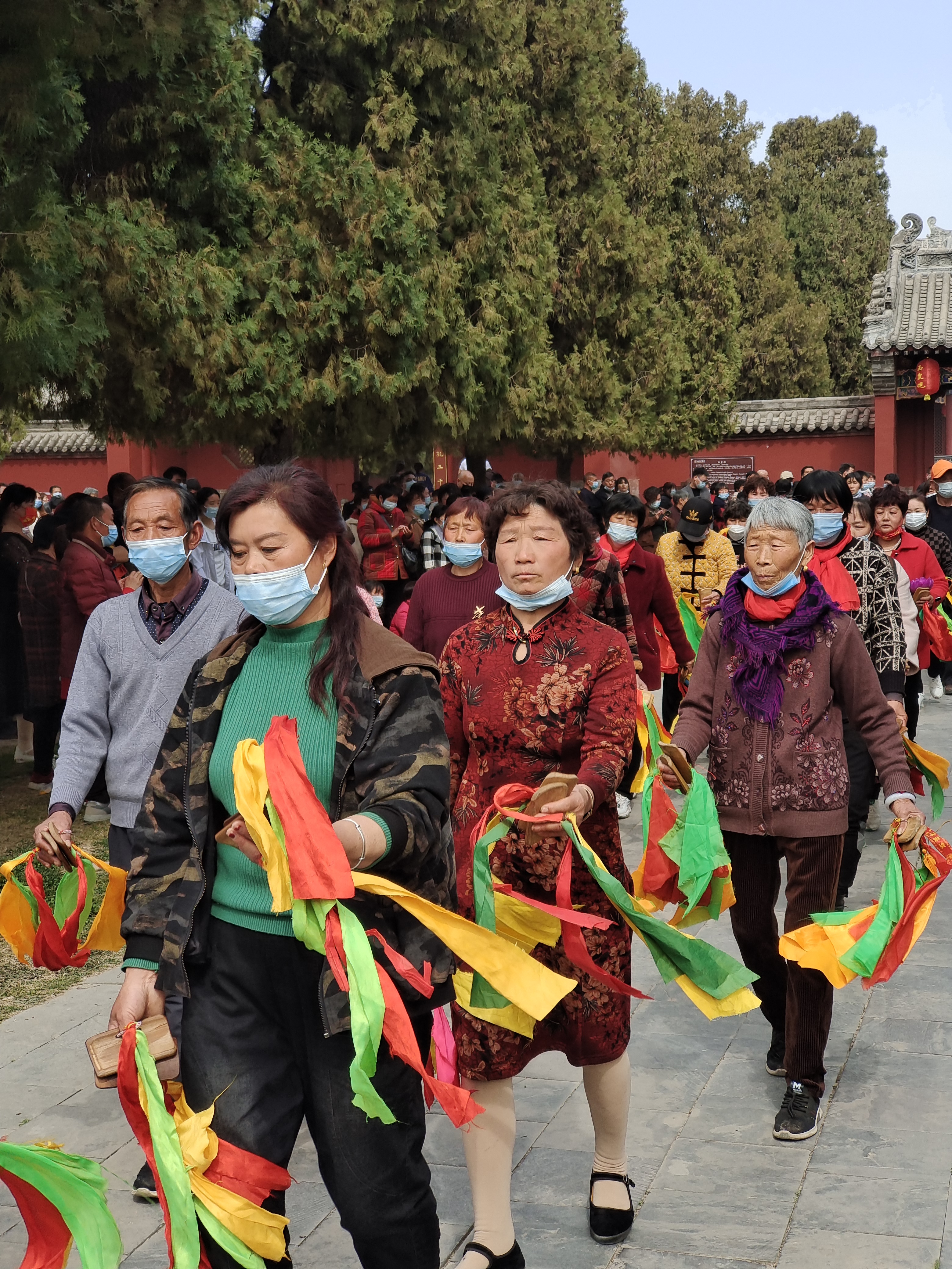 在疫情防控背景下,太昊陵中的子孫窯和岳飛觀暫時(shí)關(guān)閉。人們路過(guò)“子孫窯”時(shí),會(huì)不自覺摸摸墻角;路過(guò)岳飛觀時(shí),會(huì)雙手合十,帶孩子的會(huì)講岳飛的故事。變化之中,一些不變的照常進(jìn)行:往碑刻上貼硬幣,祈求好運(yùn);站在千年耳柏前,向人祖伏羲低聲訴說(shuō)著心事;繞伏羲大墓一周,添一把土……在淮陽(yáng)區(qū)各職能部門的努力下,這一古老又現(xiàn)代的盛會(huì)平穩(wěn)又精彩地運(yùn)行著。②5