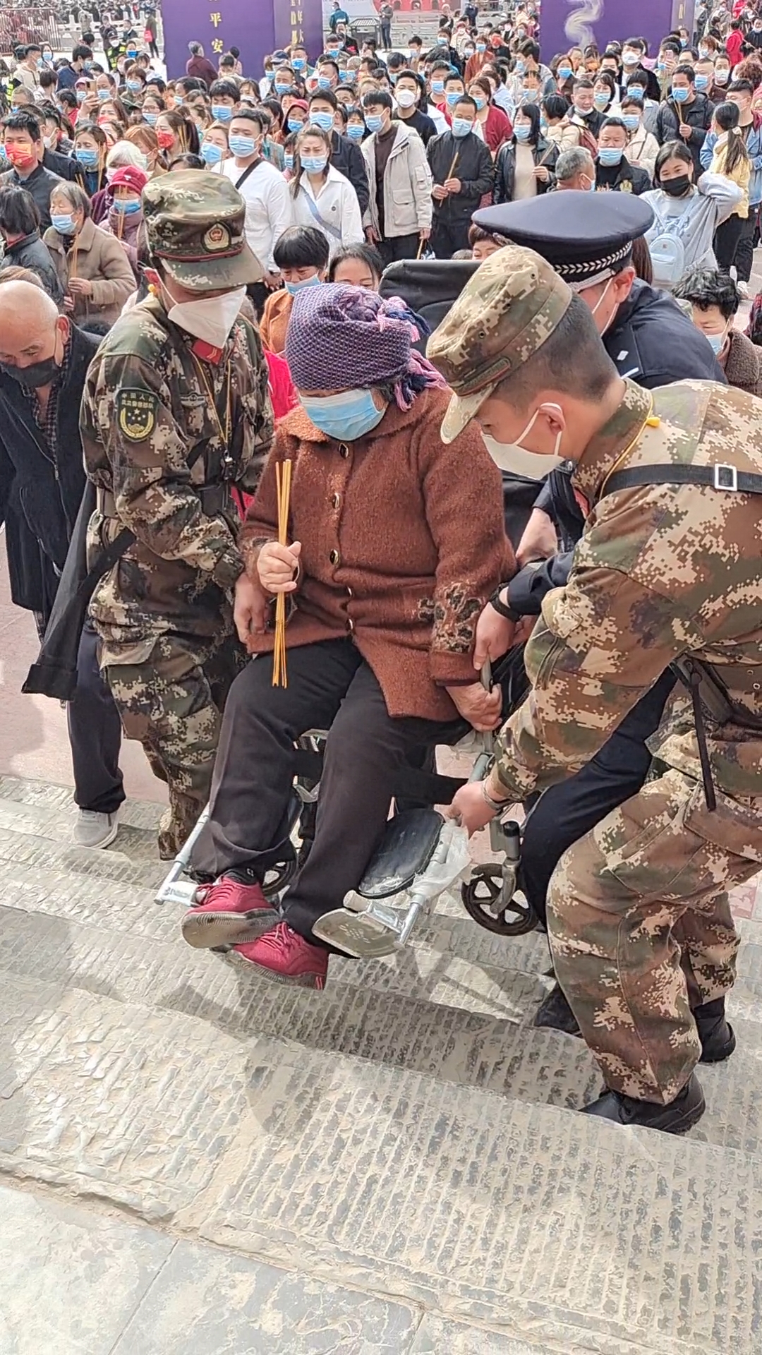 在太昊陵的第一道大門——午朝門前,身穿迷彩服的人民子弟兵分列兩排,令人安全感滿滿。他們來(lái)自武警周口支隊(duì),與當(dāng)?shù)毓哺删瘏f(xié)同聯(lián)動(dòng),負(fù)責(zé)太昊陵內(nèi)外的安保工作。除了維持秩序,這些人民子弟兵還積極幫助老弱病殘,充分體現(xiàn)“人民子弟兵為人民”的精神。