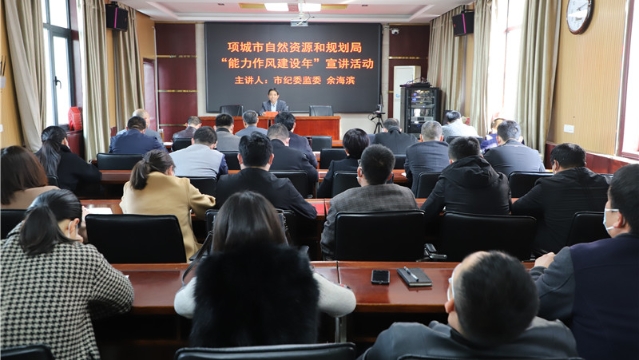 近日,項(xiàng)城市自然資源和規(guī)劃局開展“能力作風(fēng)建設(shè)年”主題宣講活動,特邀請項(xiàng)城市紀(jì)委監(jiān)委宣傳部宣講師余海濱前來授課。