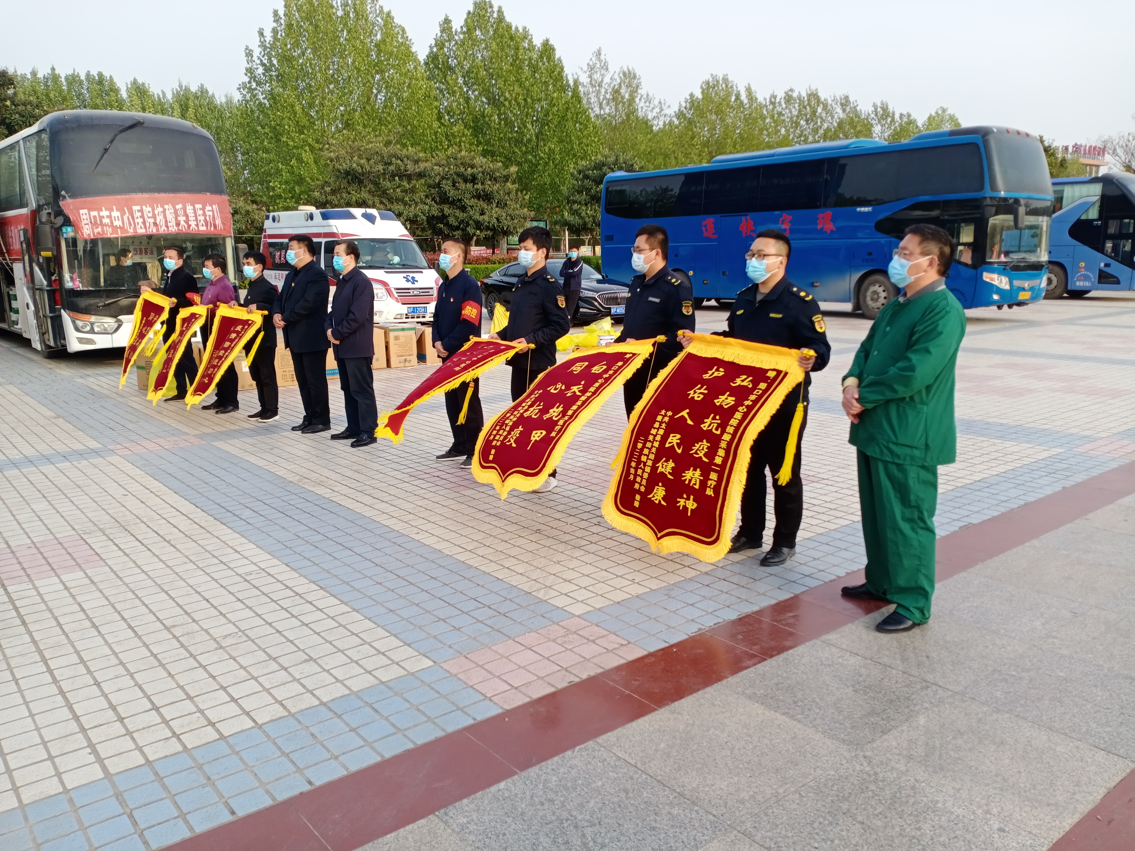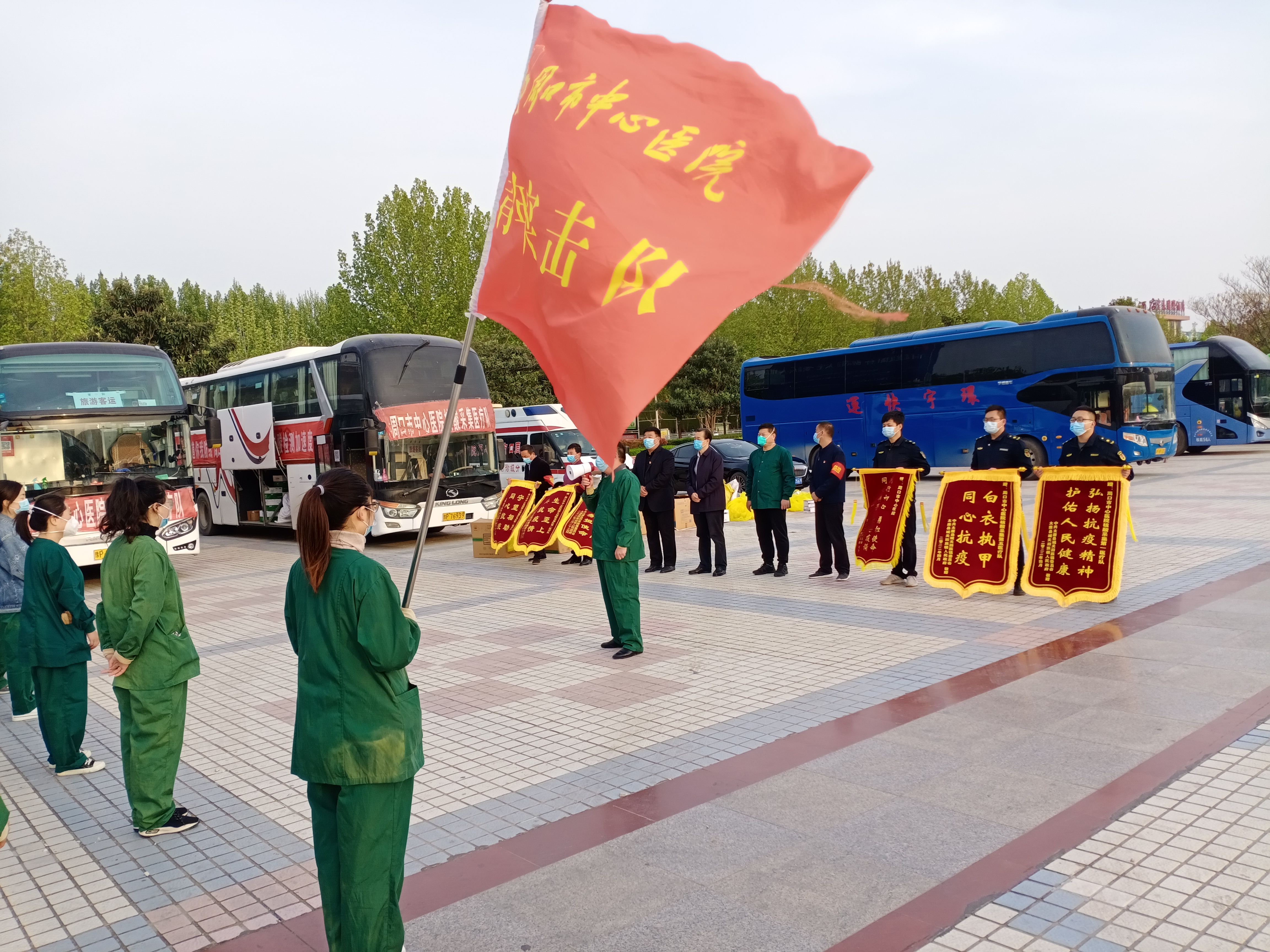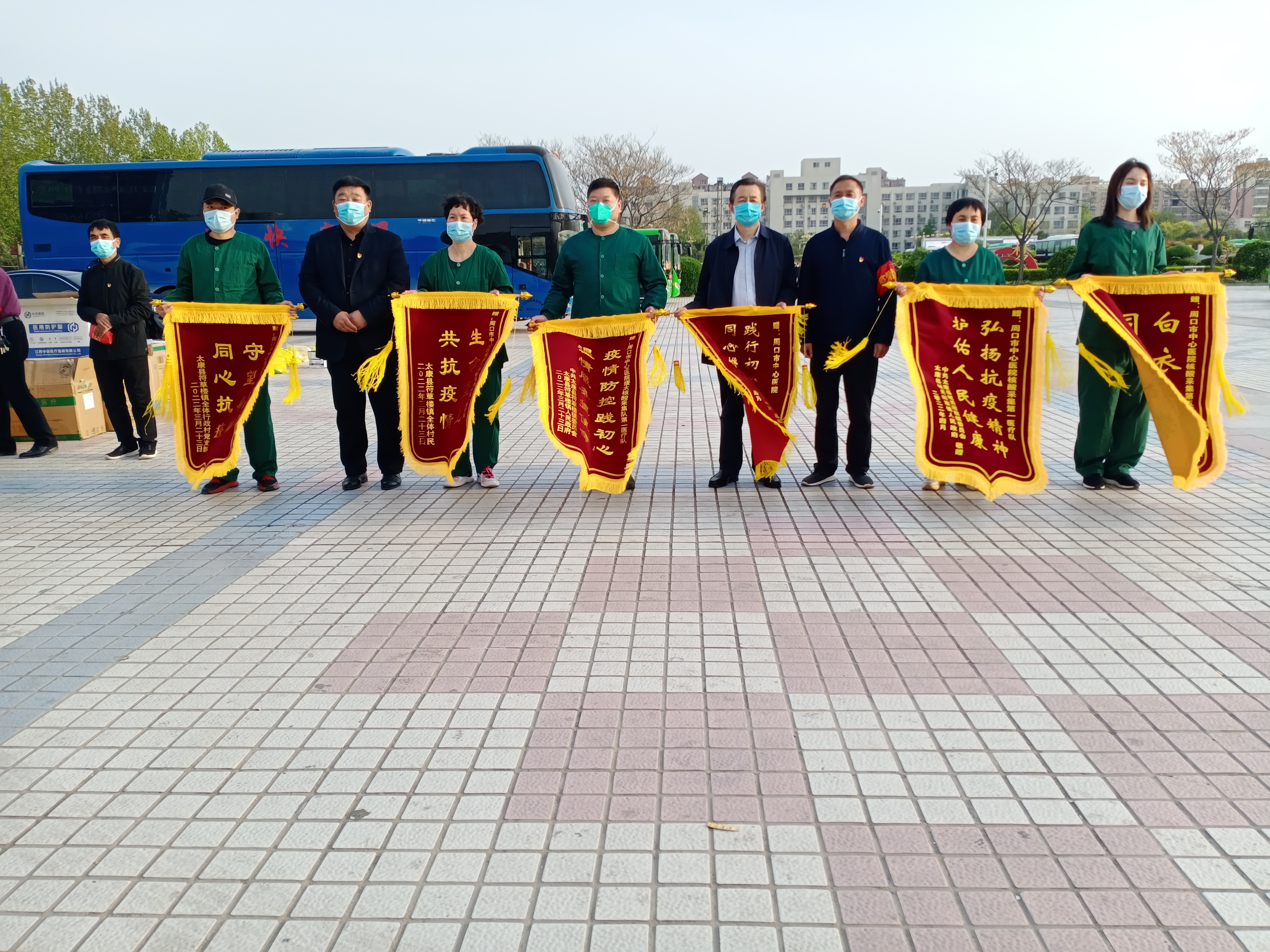 日前,太康縣城關(guān)鎮(zhèn)、符草樓鎮(zhèn)相關(guān)負(fù)責(zé)人將寫有“白衣執(zhí)甲 同心抗疫”“弘揚抗疫精神 護佑人民健康”“守望相助 同心抗疫”字樣的錦旗送到前來支援太康縣的周口市中心醫(yī)院醫(yī)務(wù)人員手中,感謝他們的無私幫助。③6 記者 張洪濤 攝