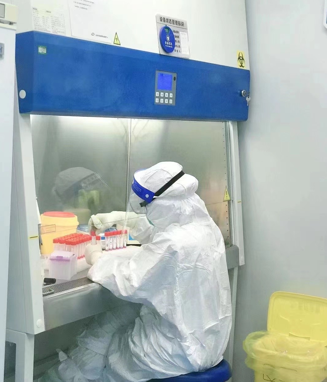 檢測結(jié)束后,姜等等還要整理信息,將陽性信息上報(bào),必須準(zhǔn)確無誤。此外,她還要負(fù)責(zé)PCR實(shí)驗(yàn)室醫(yī)療廢棄物處理……她就是一塊磚,哪里需要哪里搬。近一個月,姜等等戴著雙層乳膠手套,手上起滿了汗皰疹,手腳抽筋、上火、扁桃體發(fā)炎更是常態(tài)。她不分白天黑夜地工作,出現(xiàn)眩暈癥狀,但她從不抱怨、退縮,與同事互相鼓勵,用積極樂觀的心態(tài)奮戰(zhàn)在一線。