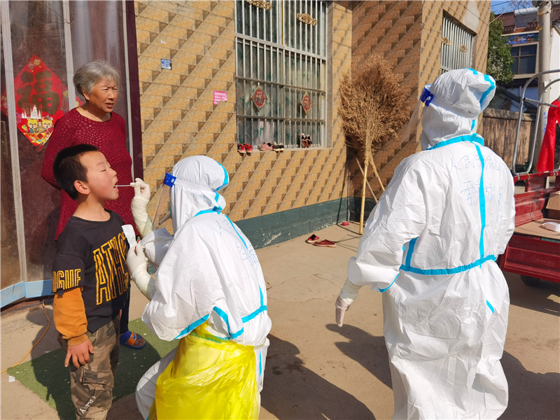 在這場(chǎng)沒有硝煙的戰(zhàn)爭中,每天凌晨3點(diǎn)起床,下午6點(diǎn)到達(dá)酒店,她們每天不到萬不得已,不敢喝水,不上廁所,從一開始集中采集到后來入戶采集,村民們都待在家里,只看到站點(diǎn)執(zhí)勤人員和穿著“大白”的她們,每天穿梭在幾個(gè)村莊之間,還幫助村民買藥,與當(dāng)?shù)卮迕窠⒘松詈竦母星椤?/p>