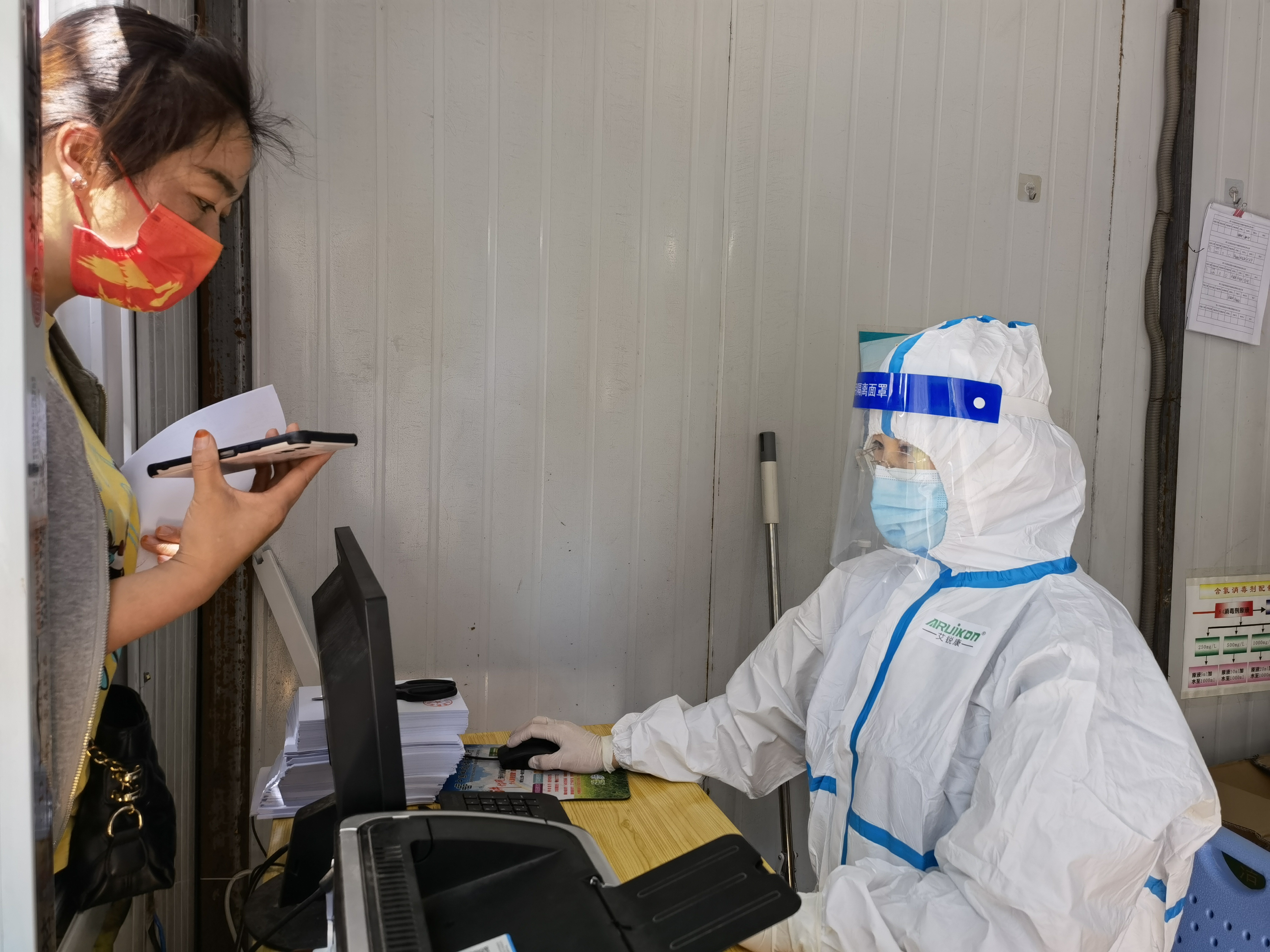 5月4日,記者在周口東新醫(yī)院核酸檢測(cè)點(diǎn)見到了全副“武裝”的王琳,她坐在核酸檢測(cè)點(diǎn)的核酸檢測(cè)報(bào)告打印崗位上,身穿防護(hù)服,認(rèn)真細(xì)致為需要幫助的群眾打印報(bào)告?!按蟮杰囕v安排,小到口罩發(fā)放、體溫計(jì)調(diào)配等防護(hù)物資保障都要協(xié)調(diào)統(tǒng)籌,一刻也不能停歇,我就想著別有什么地方落下了。安排好一切后,我回到醫(yī)院,同事們都前往全員核酸檢測(cè)一線了,這里人手不太足,我頂上。做好后勤保障工作,解決一線醫(yī)護(hù)人員的后顧之憂是我的責(zé)任和義務(wù)。”王琳說。