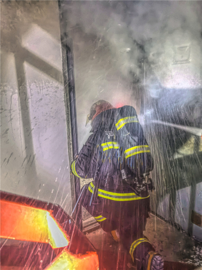 24小時乘以365天不間斷的默默守護、逢警必出;十年來每一次滅火救援時,毫不猶豫擋在人民群眾前面;撲面而來的滾燙煙火、黑暗中摸索著前行、背起被困人時急促的喘息……這些,都是消防員晉松奇工作的日常。2014年,晉松奇所在支隊接到警情稱,寧洛高速有輛貨車倒翻進暗溝,車頭嚴重變形。晉松奇帶領隊員趕往現(xiàn)場后發(fā)現(xiàn),需要把車頭吊起來后才能對司機救援。當鋼絲繩把車頭吊起來80厘米后,晉松奇剛鉆進車頭下,鋼絲繩突然松動,車頭瞬間下降30厘米,“離我的頭皮只有一拃距離,這是當消防員10年以來,第一次離死亡這么近?!比缃裨偬崞穑瑫x松奇仍心有余悸。