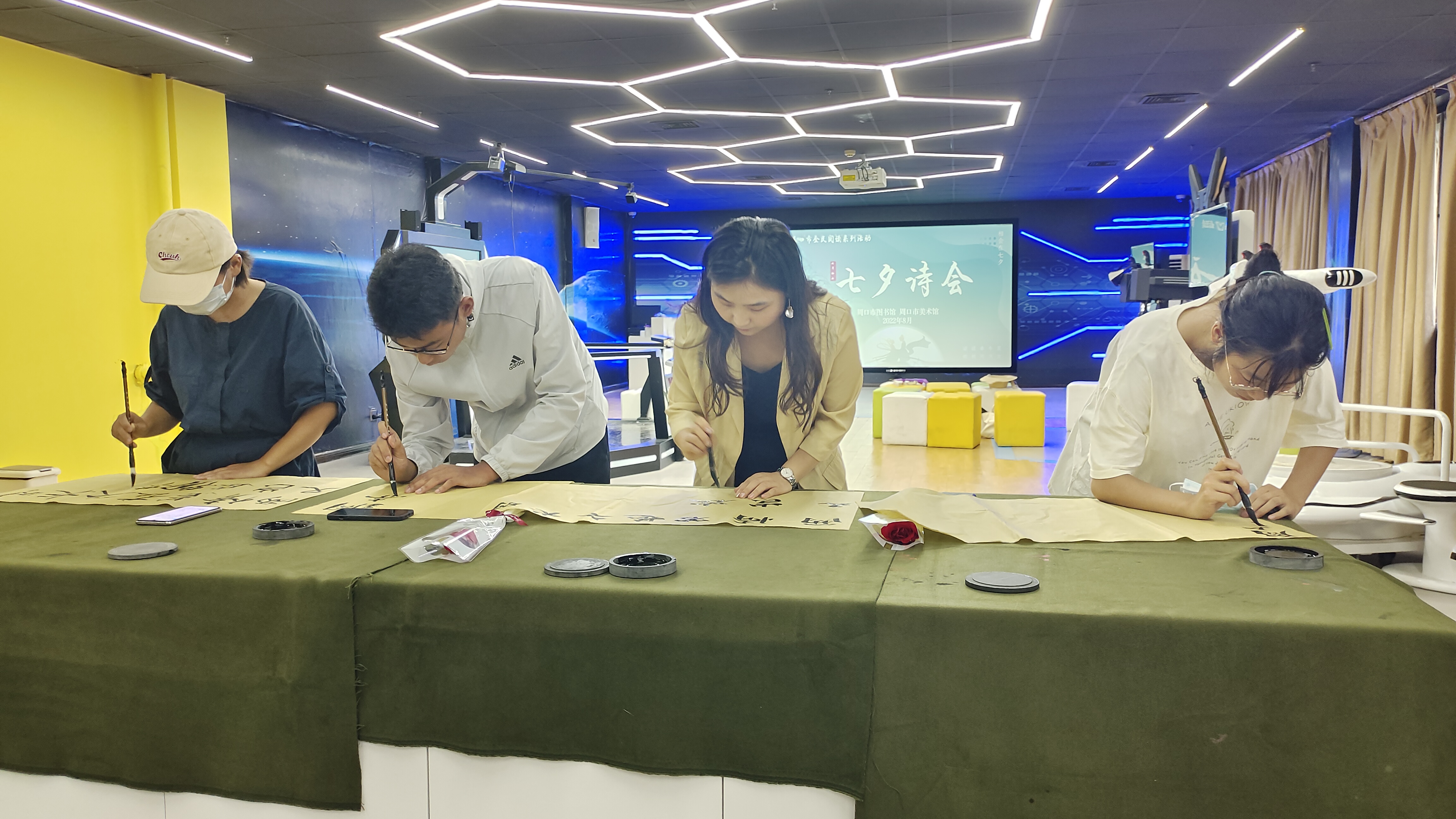 8月4日,市圖書館與市美術館在一樓智慧空間共同舉辦七夕詩會,以詩傳情,開啟中國式浪漫,20多名詩詞愛好者參加活動。