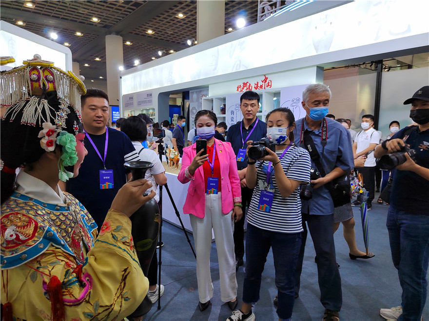 中國(guó)非物質(zhì)文化遺產(chǎn)博覽會(huì),每?jī)赡昱e辦一屆,是非遺領(lǐng)域的全國(guó)性重要品牌活動(dòng),已成為展示非遺保護(hù)成果、宣傳非遺保護(hù)理念、引領(lǐng)非遺保護(hù)工作的重要平臺(tái)。本屆非物質(zhì)文化遺產(chǎn)博覽會(huì)為期5天,河南省有16個(gè)非遺項(xiàng)目、4個(gè)非遺美食企業(yè)參展,布置在文化底蘊(yùn)深厚的“行走河南·讀懂中國(guó)”展區(qū)?;搓?yáng)黑陶、仰韶彩陶、唐三彩、魯山窯、汝瓷、鈞瓷、登封窯、當(dāng)陽(yáng)峪絞胎瓷、澄泥硯、浚縣泥咕咕燒制技藝在展廳一一亮相。淮陽(yáng)黑陶燒制技藝省級(jí)傳承人張輝攜帶的部分作品以大氣、精美的文化底蘊(yùn)深深吸引著人們觀賞,各派非遺戲曲傳人也紛紛捧起他的黑陶作品展示中原古老的黑陶藝術(shù)文化。②15