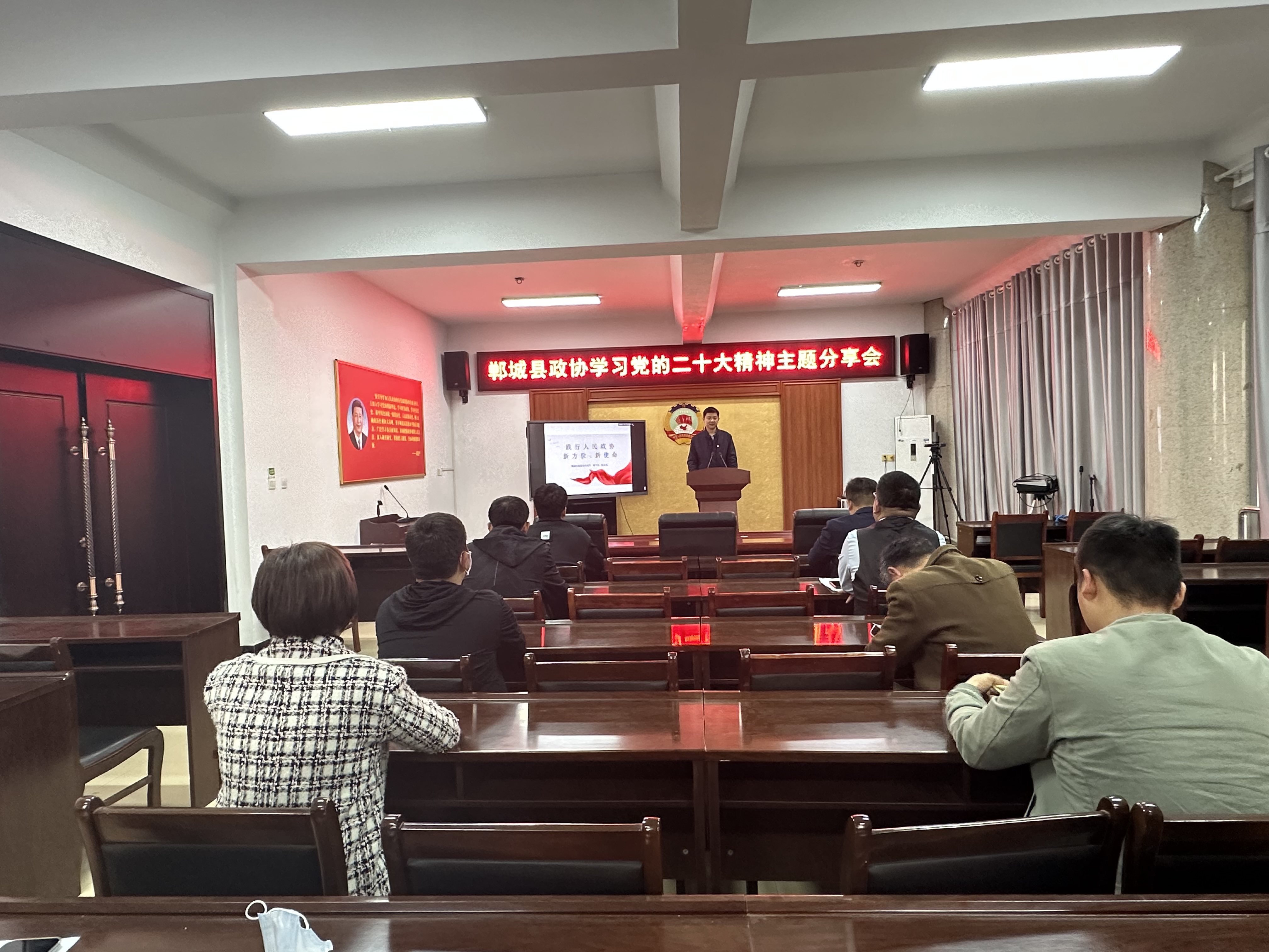 為深入學(xué)習(xí)宣傳貫徹黨的二十大精神,落實中央和省委、市委、縣委、縣政協(xié)工作會議精神,持續(xù)深化“委員讀書學(xué)習(xí)”活動,提升政協(xié)履職實效,激發(fā)干事活力,11月17日,鄲城縣政協(xié)舉辦“學(xué)精神踐行動 閱讀向未來”學(xué)習(xí)黨的二十大精神主題分享會??h政協(xié)秘書長朱東風(fēng)及全體機關(guān)人員參加活動。
