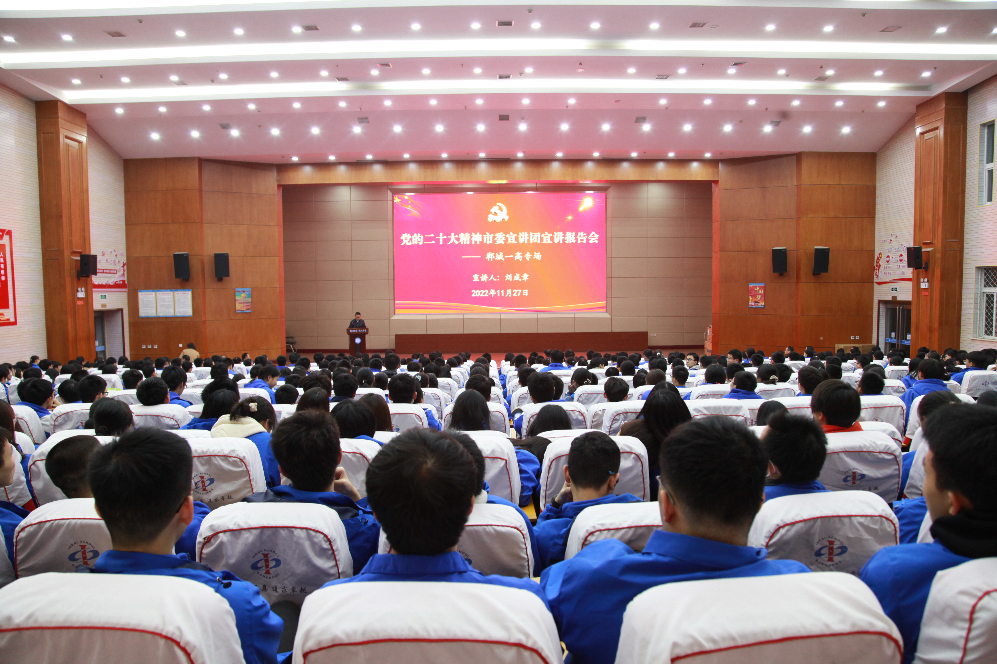 “我們將牢牢抓住國(guó)家‘縣中提升計(jì)劃’政策機(jī)遇,在教育、教學(xué)、服務(wù)、管理等方面進(jìn)行優(yōu)化與完善,在拉高標(biāo)桿中爭(zhēng)先進(jìn)位,在加壓奮進(jìn)中開(kāi)創(chuàng)新局,提升學(xué)校辦學(xué)水平,努力讓更多農(nóng)村孩子接受優(yōu)質(zhì)教育,為全面推進(jìn)鄉(xiāng)村振興提供更強(qiáng)大的人才和智力支撐?!?1月27日晚,黨的二十大精神市委宣講團(tuán)鄲城一高專場(chǎng)宣講報(bào)告會(huì)舉行,黨的二十大代表、市委宣講團(tuán)成員、鄲城一高黨委書(shū)記、校長(zhǎng)劉成章以《學(xué)深悟透新精神 培根鑄魂育新人》為題作了宣講報(bào)告。400余名師生代表聆聽(tīng)。