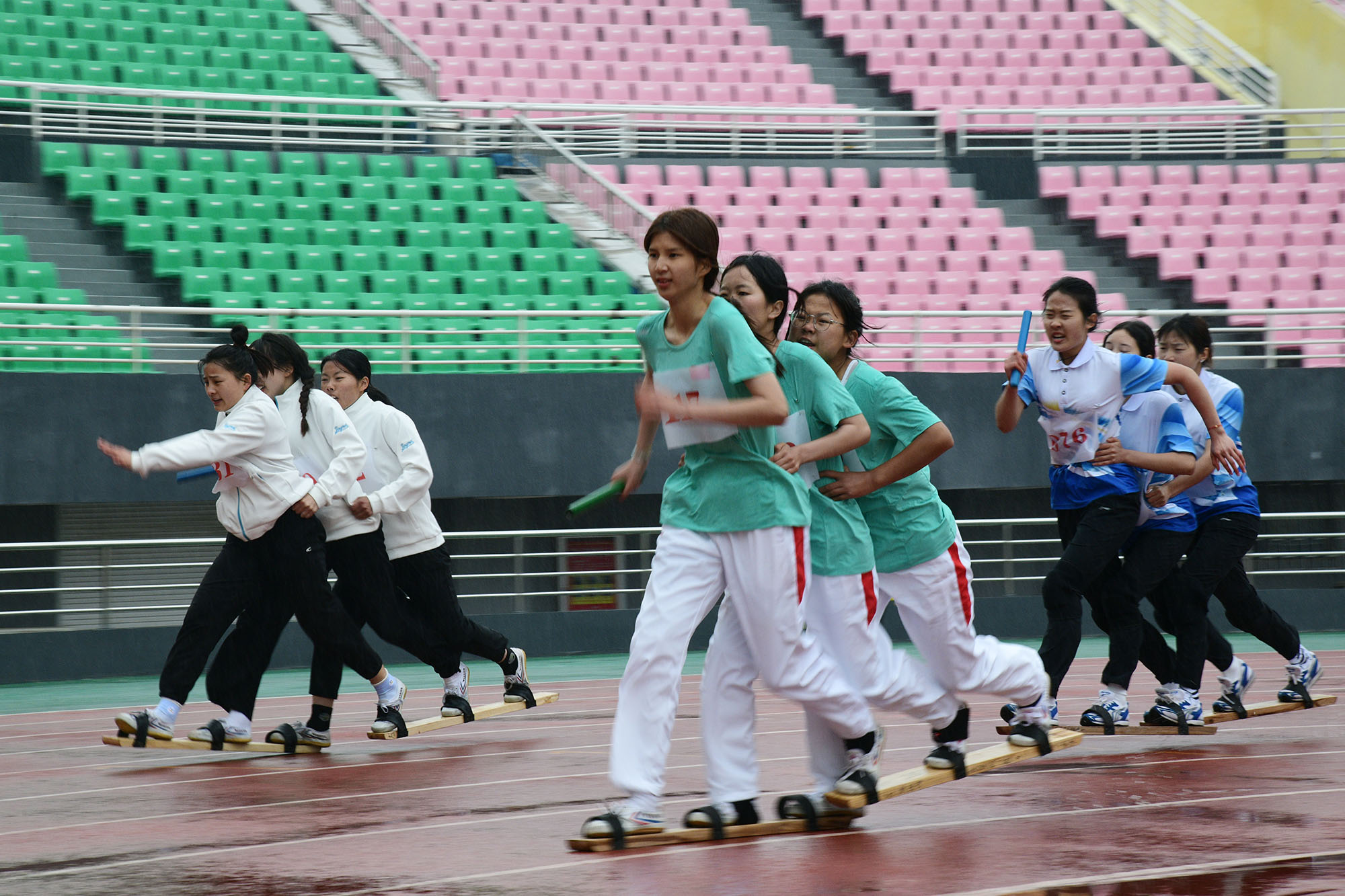 4月23日上午,河南省第九屆少數(shù)民族傳統(tǒng)體育運(yùn)動(dòng)會(huì)開賽。圖為在市體育中心進(jìn)行的板鞋競(jìng)速和陀螺比賽。記者 梁照曾 攝
