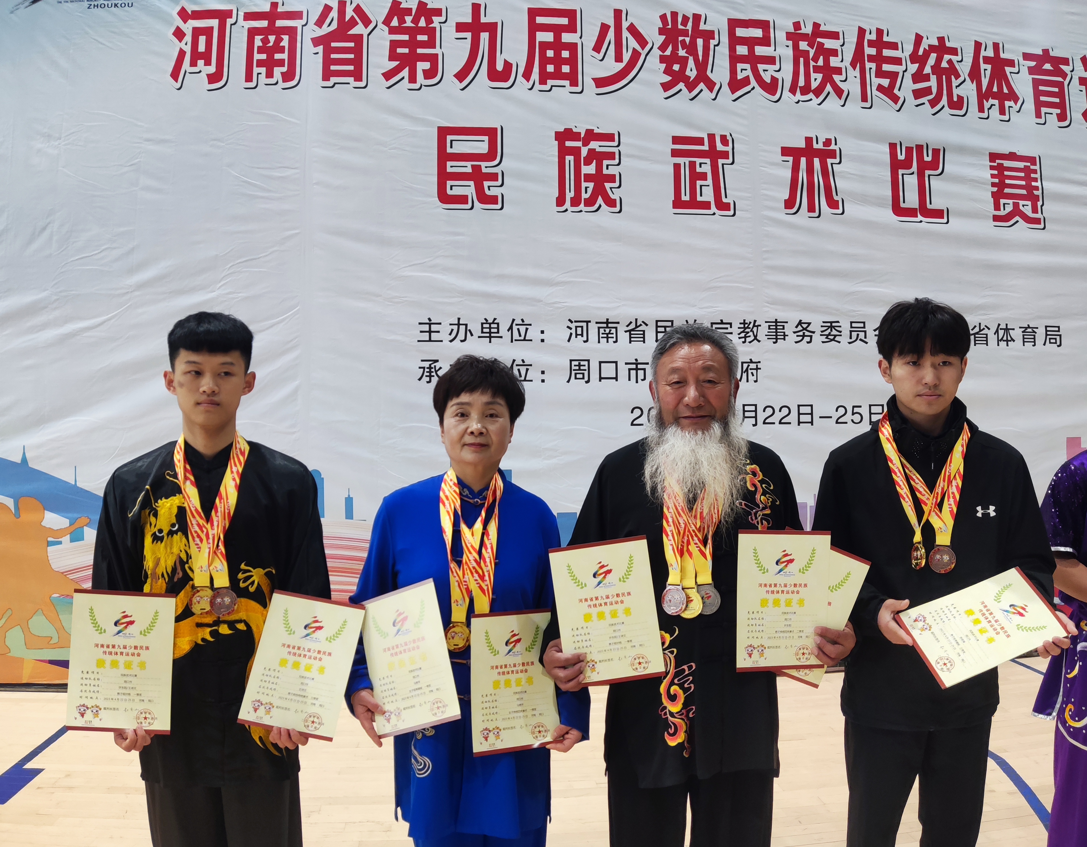據(jù)悉,在本屆民族運(yùn)動(dòng)會(huì)民族武術(shù)項(xiàng)目中,產(chǎn)生13項(xiàng)金牌,24項(xiàng)銀牌,29項(xiàng)銅牌。周口隊(duì)收獲4項(xiàng)金牌、1項(xiàng)銀牌、3項(xiàng)銅牌,取得歷史最好成績(jī)。其中,蘇俊瑞獲得男子傳統(tǒng)一類(lèi)拳術(shù)金牌,馬艷平獲得女子傳統(tǒng)四類(lèi)拳術(shù)金牌、女子組單器械金牌,許東陽(yáng)、王詩(shī)文獲得男子組對(duì)練金牌。許東陽(yáng)還獲得男子傳統(tǒng)四類(lèi)拳術(shù)銀牌、男子組單器械銅牌。王詩(shī)文獲得男子其他類(lèi)拳術(shù)銅牌。蘇俊瑞獲男子組單器械銅牌。②2