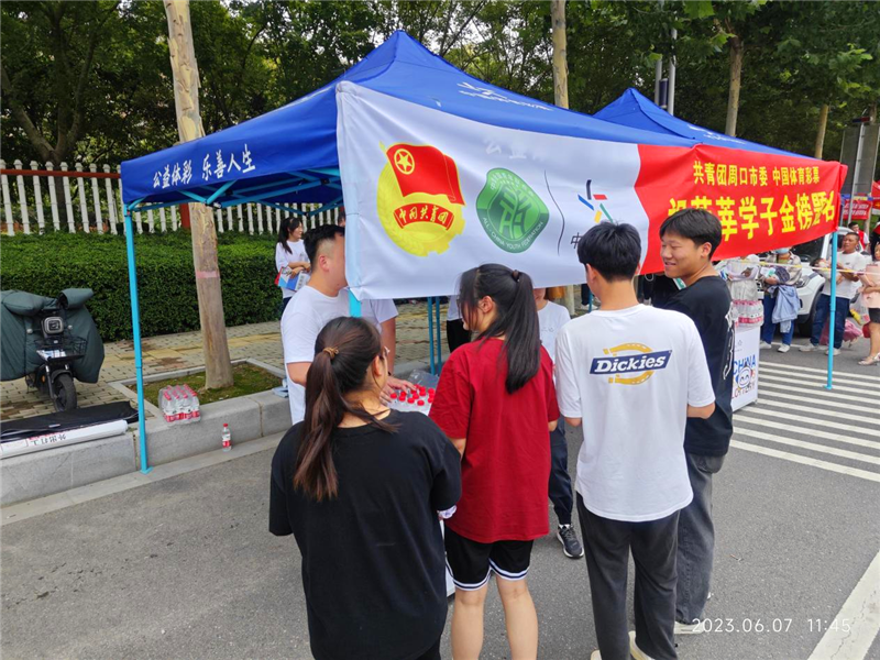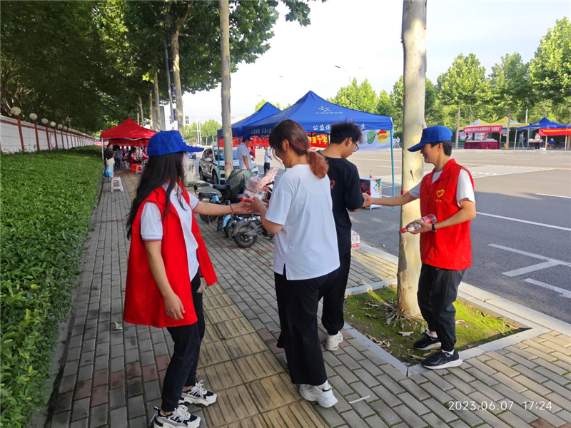 6月7日上午,一年一度的高考如期進(jìn)行。為助力學(xué)子順利考試,奉獻(xiàn)社會(huì)愛心,河南省體育彩票管理中心周口分中心聯(lián)合共青團(tuán)周口市委,在周口市文昌中學(xué)考點(diǎn)設(shè)立服務(wù)站點(diǎn)開展愛心助考活動(dòng)。