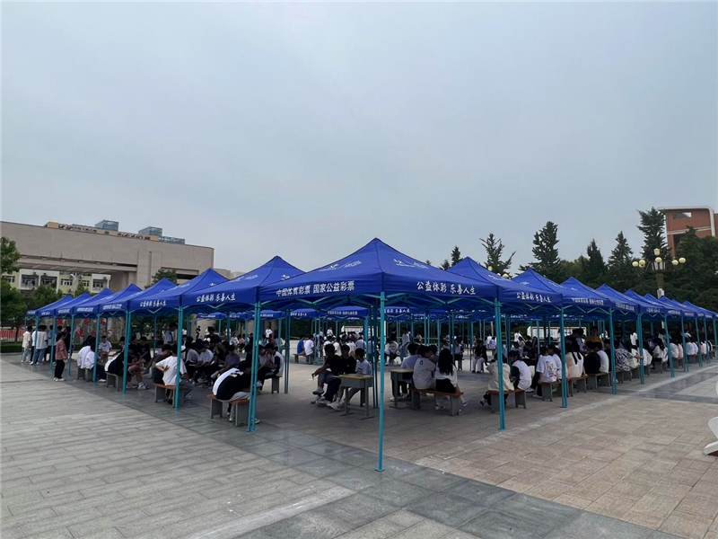 本次活動(dòng)周口體彩分中心協(xié)調(diào)到40余頂帳篷,在考場(chǎng)外設(shè)置服務(wù)點(diǎn)為考生及家長(zhǎng)提供飲用水、歇息區(qū)。結(jié)合周口市文昌中學(xué)實(shí)際情況,在考場(chǎng)校園內(nèi)搭設(shè)一整片體彩遮陽帳篷陰涼區(qū)域,為考生候場(chǎng)提供一片“清涼”。 與此同時(shí),體彩志愿者熱情地為考生及家長(zhǎng)提供愛心服務(wù),送上一瓶瓶清涼的礦泉水,帶著滿滿的愛心與祝福,給莘莘學(xué)子們加油助威,讓他們切身感受到體彩人的擔(dān)當(dāng)和真摯的關(guān)愛。
