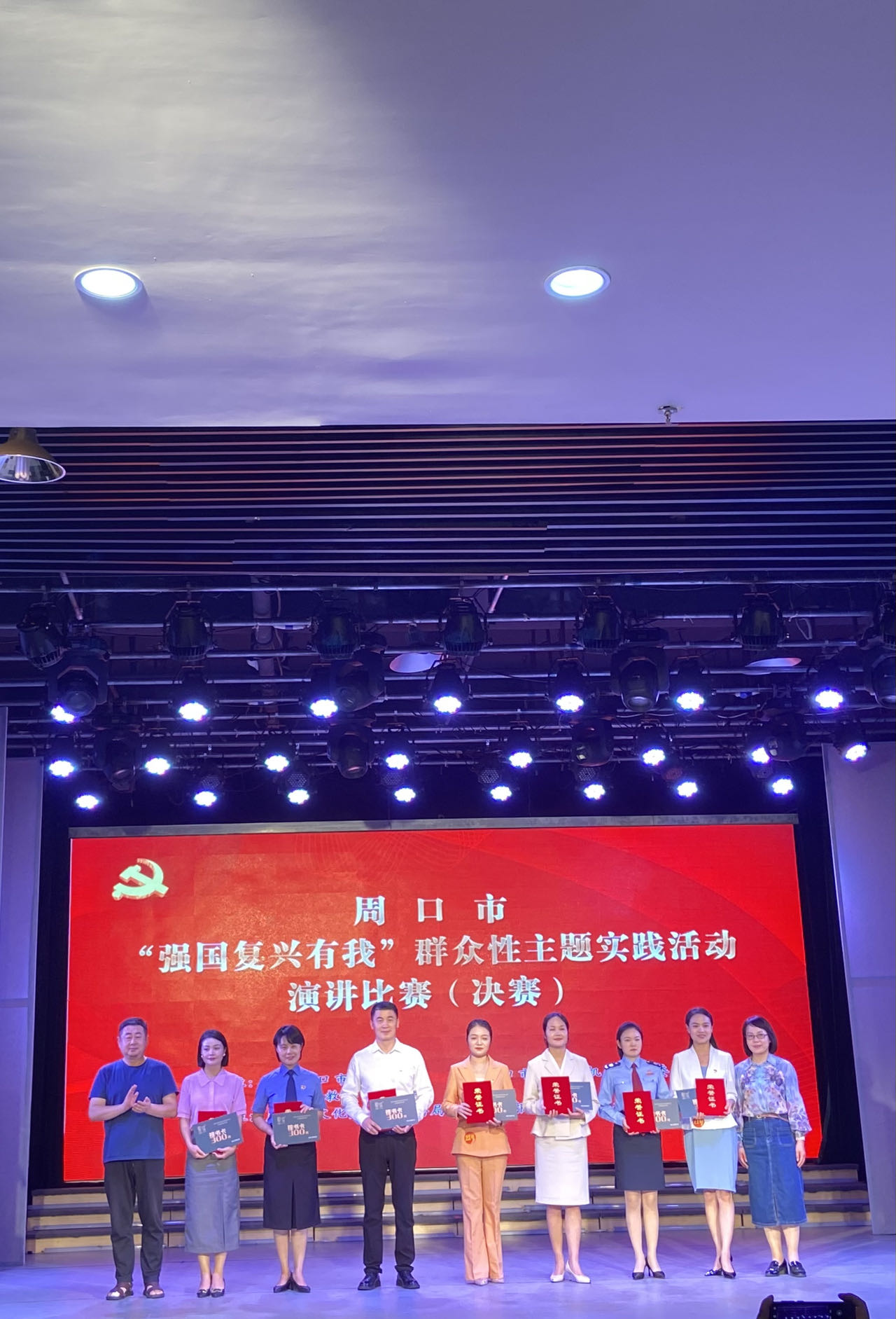 決賽過程中,選手立足中國式現(xiàn)代化全面推進(jìn)中華民族偉大復(fù)興的廣闊征程, 以各自學(xué)習(xí)、工作、生活為視角,以微故事、微黨課、微講述為主要方式,用飽滿的熱情講述了學(xué)習(xí)宣傳貫徹黨的二十大精神的個人感悟、具體實(shí)踐;講述了錨定“兩個確保”,實(shí)施 “ 十大戰(zhàn)略”,推進(jìn)中國式現(xiàn)代化周口實(shí)踐的實(shí)際行動;講述了繁榮發(fā)展文化事業(yè),深入實(shí)施文旅文創(chuàng)融合戰(zhàn)略周口實(shí)踐之“我”的認(rèn)識。選手們情感充沛、慷慨激昂,“強(qiáng)國有我 請黨放心”的口號鏗鏘有力,響徹劇場,展示了一代周口青年奮力譜寫中國式現(xiàn)代化周口絢麗篇章的信心和決心。