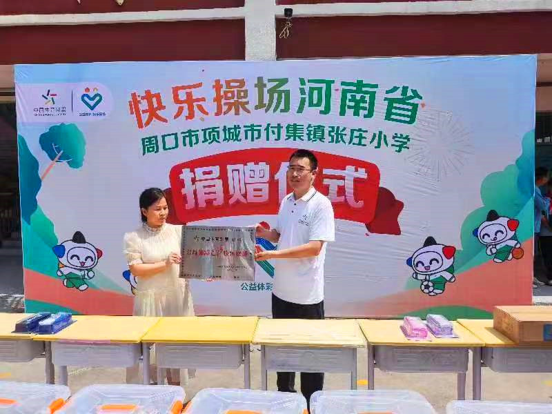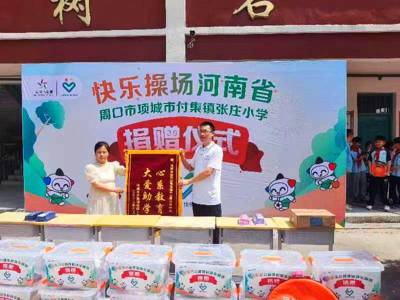 “公益體彩獻(xiàn)愛心,快樂操場進(jìn)校園”。6月20日,“公益體彩 快樂操場”走進(jìn)項城市付集鎮(zhèn)張莊小學(xué)開展公益捐贈活動。學(xué)校負(fù)責(zé)人將錦旗送到周口體彩分中心副主任孫海永手中,對該中心的善舉表達(dá)了衷心感謝。