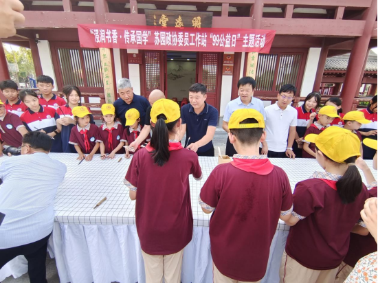 本次活動,特邀劉氏毛筆制作技藝第六十七代傳承人劉永杰現(xiàn)場講解和演繹毛筆的制作過程,40多名中小學生親身體驗,親手制作,更深一步了解毛筆的制作工序,讓毛筆制作技藝不斷發(fā)揚光大,讓非遺文化不斷的傳承下去,激勵學生們寫好中國字,做好中國人。委員們和學子們在非遺傳承人的指導下,共同制作“蘇園狀元筆”。