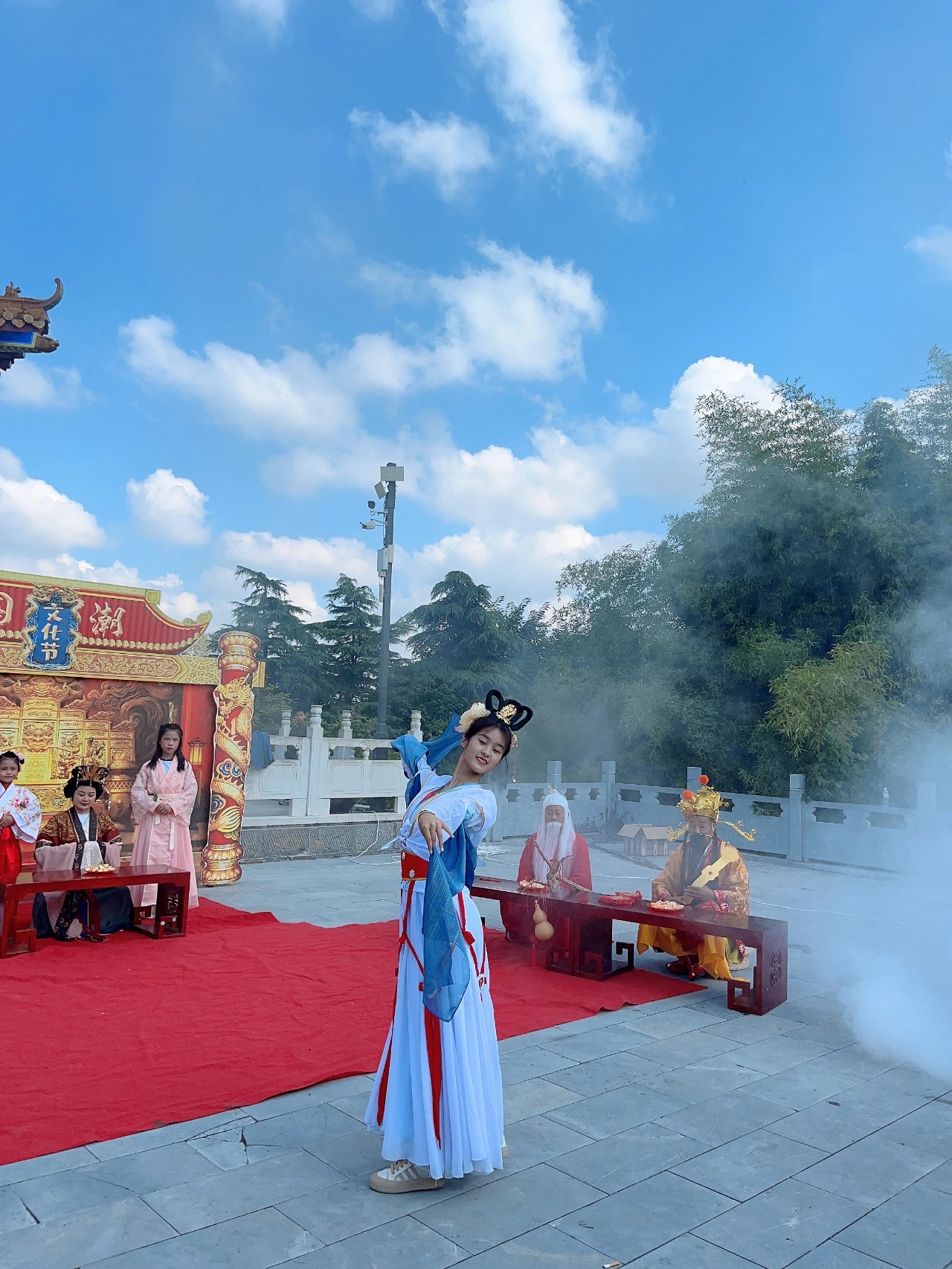 “雙節(jié)”期間,鹿邑縣太清宮景區(qū)迎來了特殊的客人——“嫦娥仙子”。伴隨著美妙的音樂,“嫦娥仙子”通過仙氣十足的舞蹈,與游客進行了一場場難忘的互動,游客也紛紛跟隨“嫦娥仙子”翩翩起舞,仿佛置身于仙境之中。②7