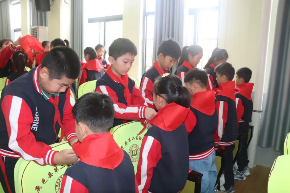 儀式上,該校副校長肖東旭宣布新隊員名單,230名同學(xué)加入中國少年先鋒隊,成為一名光榮的少先隊員。緊接著,四年級優(yōu)秀隊員代表莊重地為新隊員代表系上鮮艷的紅領(lǐng)巾。在大隊長的帶領(lǐng)下,全體隊員在隊旗下莊嚴(yán)宣誓。少先大隊委員熱烈歡迎新隊員加入。