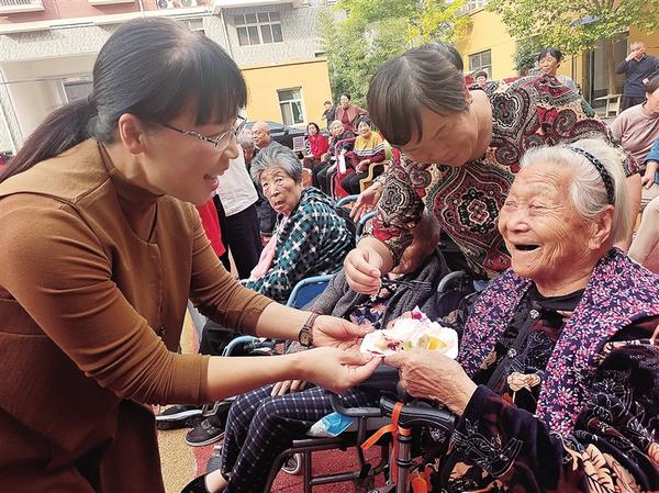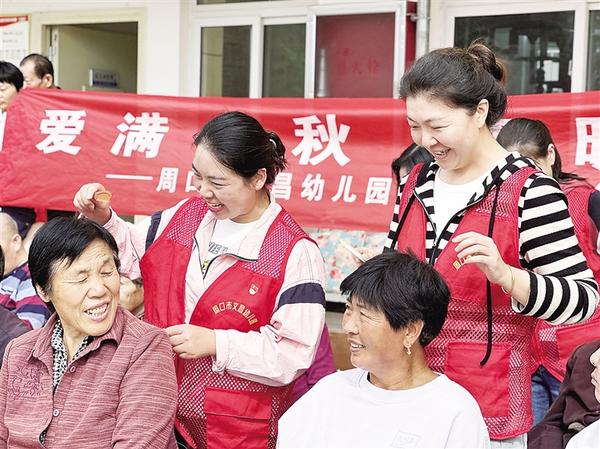 10月10日上午,周口市文昌幼兒園黨支部30余名黨員志愿者來到川匯區(qū)城南街道綜合養(yǎng)老中心,開展“愛滿金秋 情暖重陽”志愿服務(wù)活動。志愿者向老人送去慰問品,并表達(dá)對老年人的美好祝福。