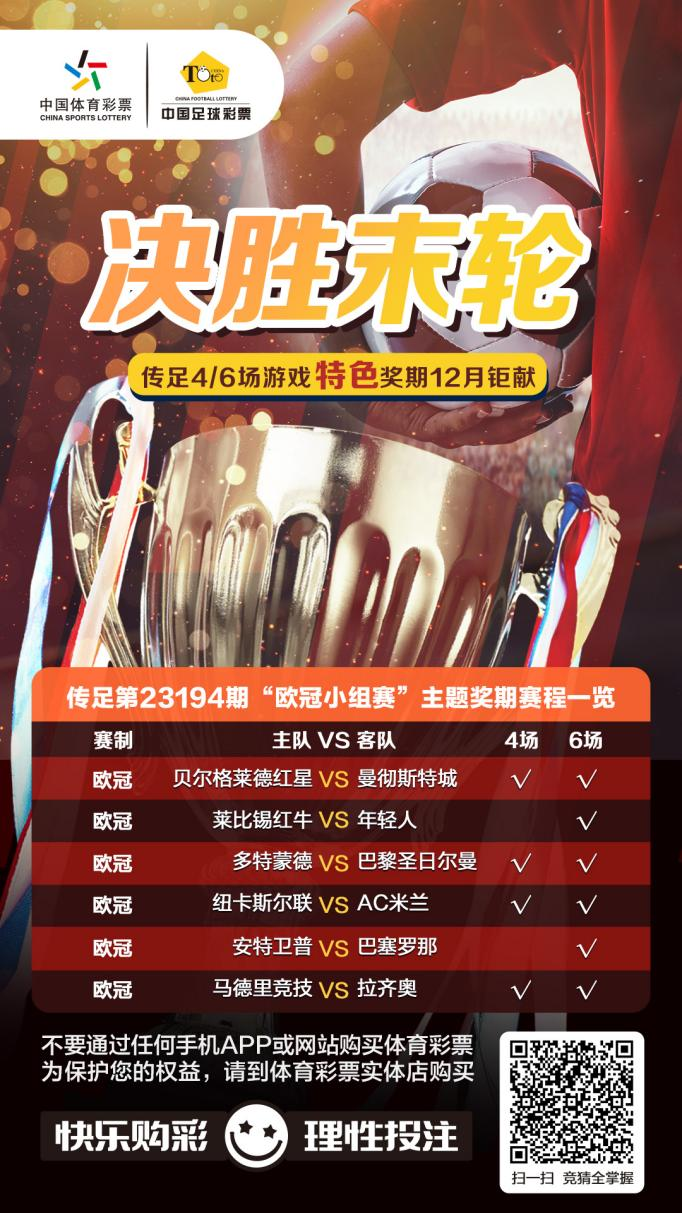 決勝末輪!傳足特色獎(jiǎng)期第23194期聚焦“歐冠小組賽”