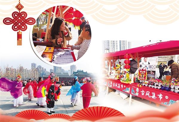 2月9日,在周口首屆“三川十館·春會”歷史街區(qū)關帝廟廣場上,精彩紛呈的劃旱船、抖空竹、舞鞭陀龍等民俗表演節(jié)目向游客送去了春節(jié)的美好祝福。人們在春會的各個活動板塊,趕大集、賞民俗,喜迎新年的到來。
