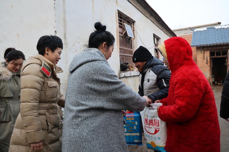2月6日,周口日?qǐng)?bào)社聯(lián)合三川巾幗創(chuàng)業(yè)聯(lián)合會(huì)和愛(ài)心企業(yè)河南宇杰梵商貿(mào)有限公司相關(guān)人員,到淮陽(yáng)區(qū)馮塘鄉(xiāng)劉莊村困難群眾家中走訪(fǎng)慰問(wèn),送去節(jié)日慰問(wèn)品,與他們促膝談心、親切聊天,詳細(xì)詢(xún)問(wèn)他們的身體、生活情況,為他們送去新春的祝福。