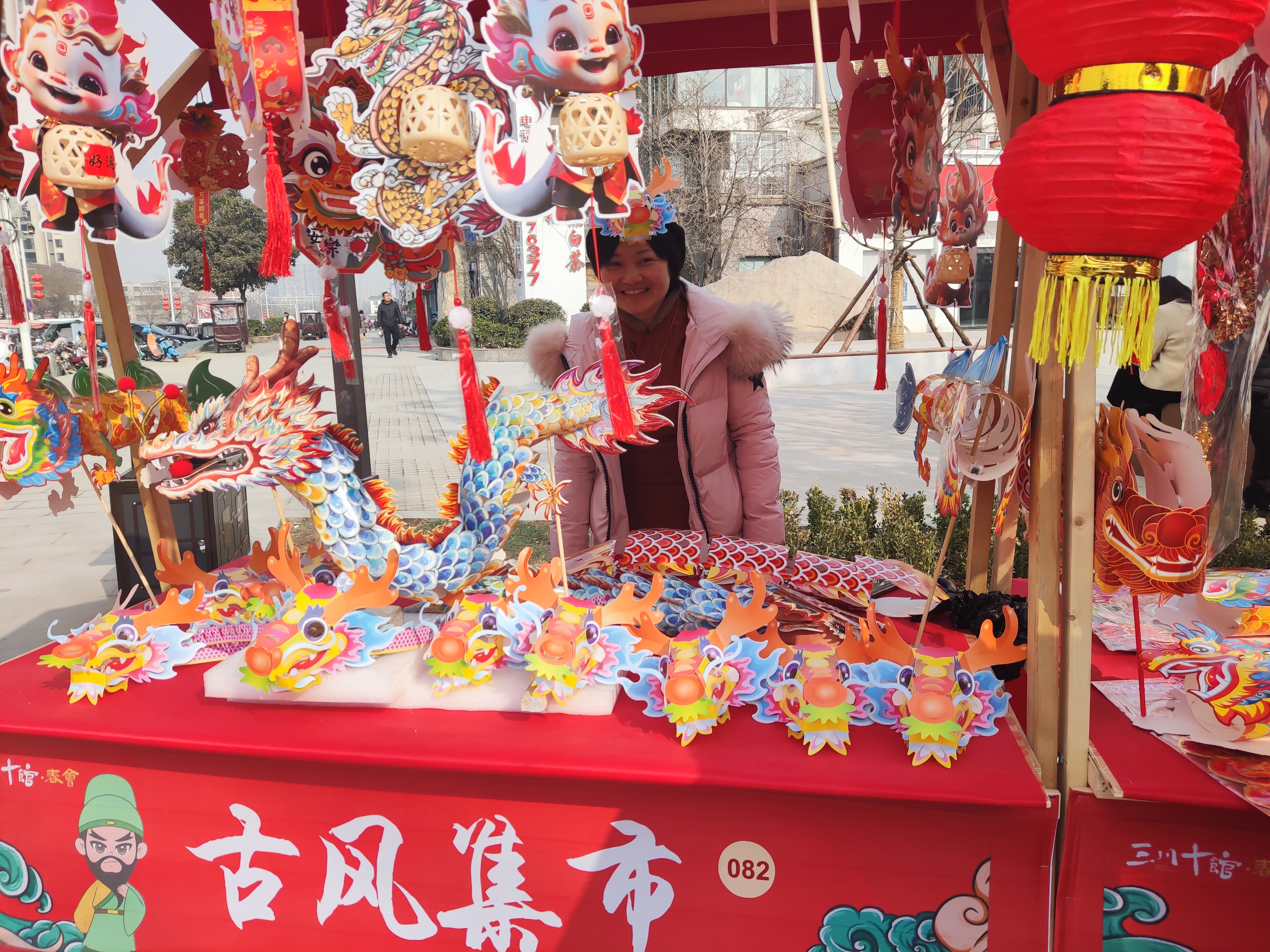 2月12日,“三川十館·春會(huì)”關(guān)帝廟歷史街區(qū)的“古風(fēng)集市”上,人來(lái)人往、熙熙攘攘。布老虎、泥泥狗、剪紙、棕編、草編、糖人等具有周口特色的非遺產(chǎn)品營(yíng)造了濃濃的年味,吸引大量游客前來(lái)欣賞、購(gòu)買。多姿多彩的非遺產(chǎn)品也讓龍年春節(jié)更加具有文化氣息。(記者 王吉城 攝)