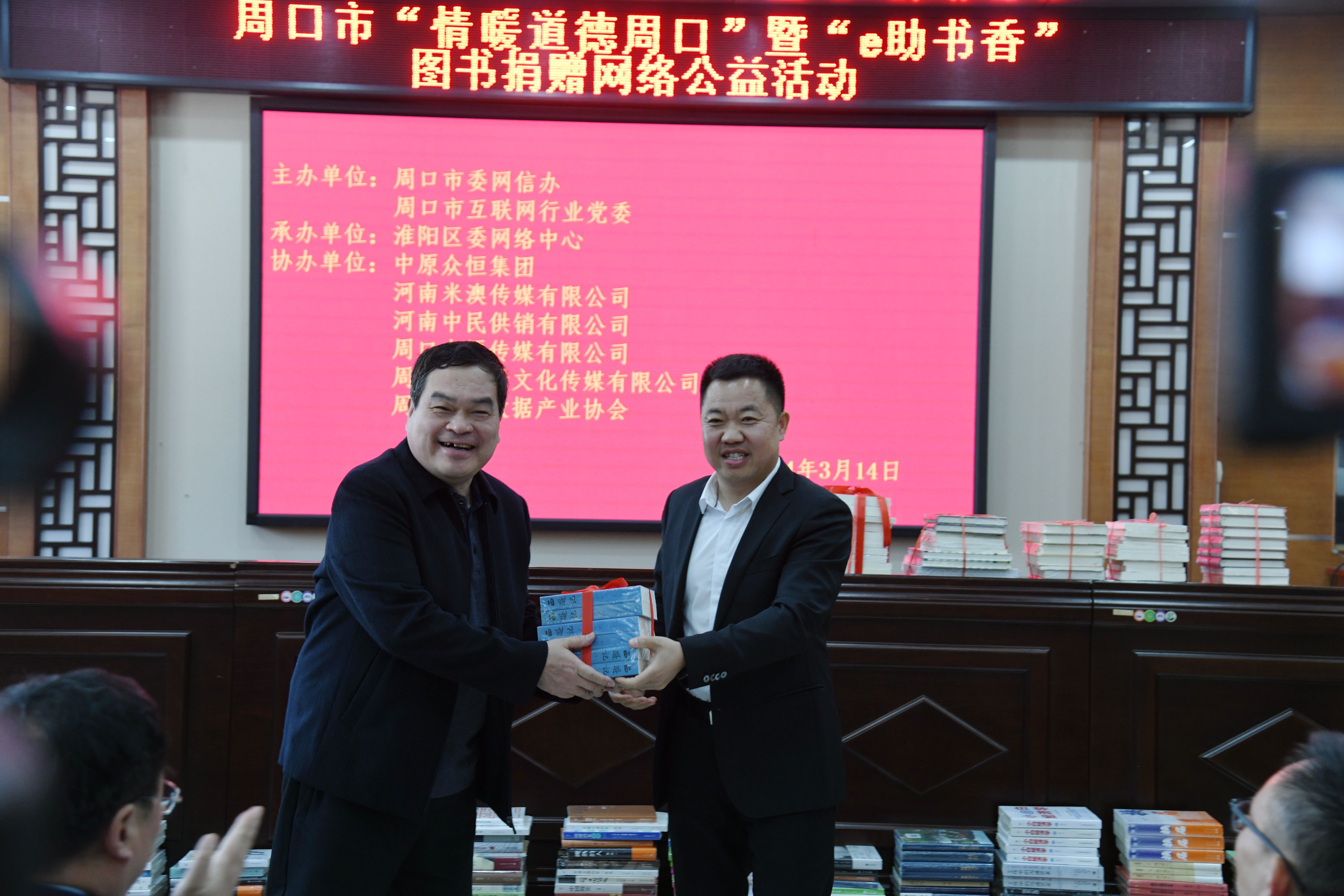 3月11日上午,第二屆周口伏羲書(shū)展在淮陽(yáng)開(kāi)幕。在開(kāi)幕式的捐贈(zèng)環(huán)節(jié),中原越秀實(shí)業(yè)有限公司董事長(zhǎng)、越秀豐廚(周口)食品科技有限公司董事長(zhǎng)李玉平向周口市中小學(xué)校捐贈(zèng)圖書(shū)300萬(wàn)元碼洋(價(jià)值300萬(wàn)元約6萬(wàn)冊(cè)圖書(shū))。